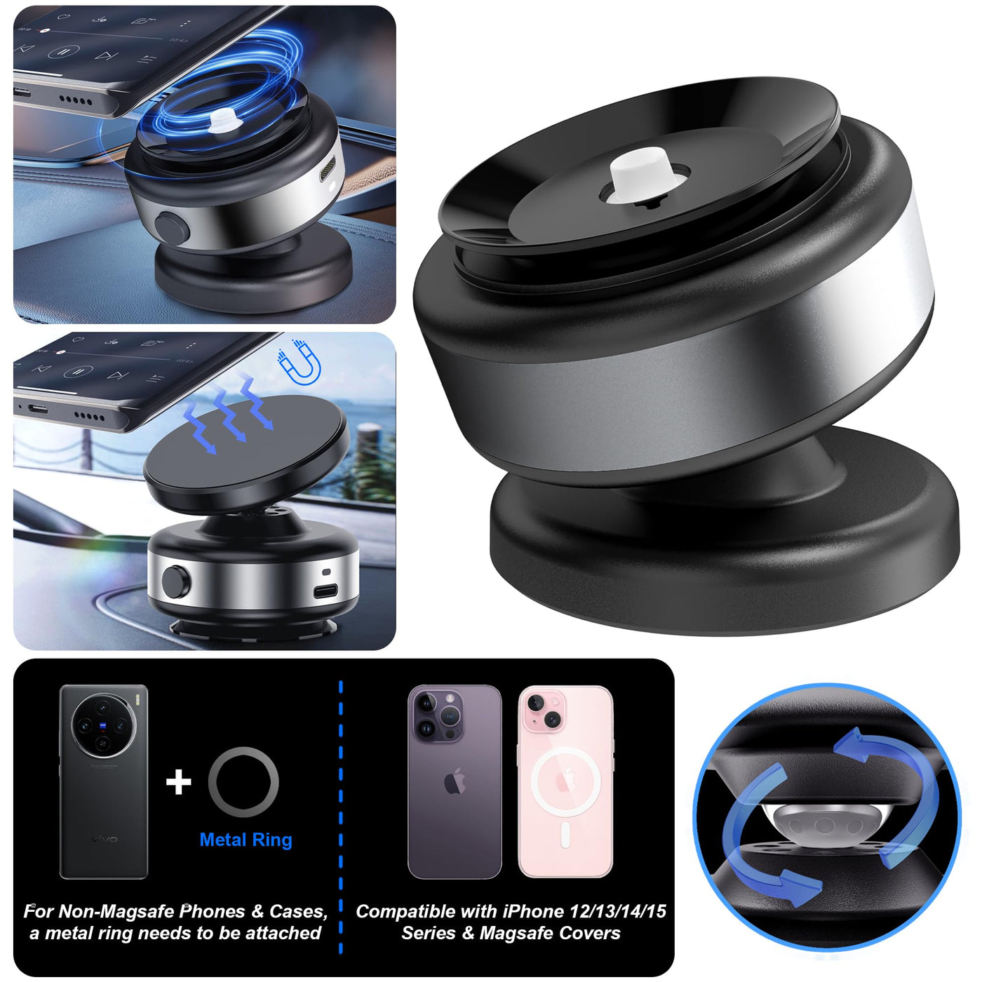 Fostex Vacuum Magnetic Phone Holder Magnet,360 Adjustable Rotatable Magnetic Mount,Electric Vacuum Magnetic Phone Holder,Hands-F
