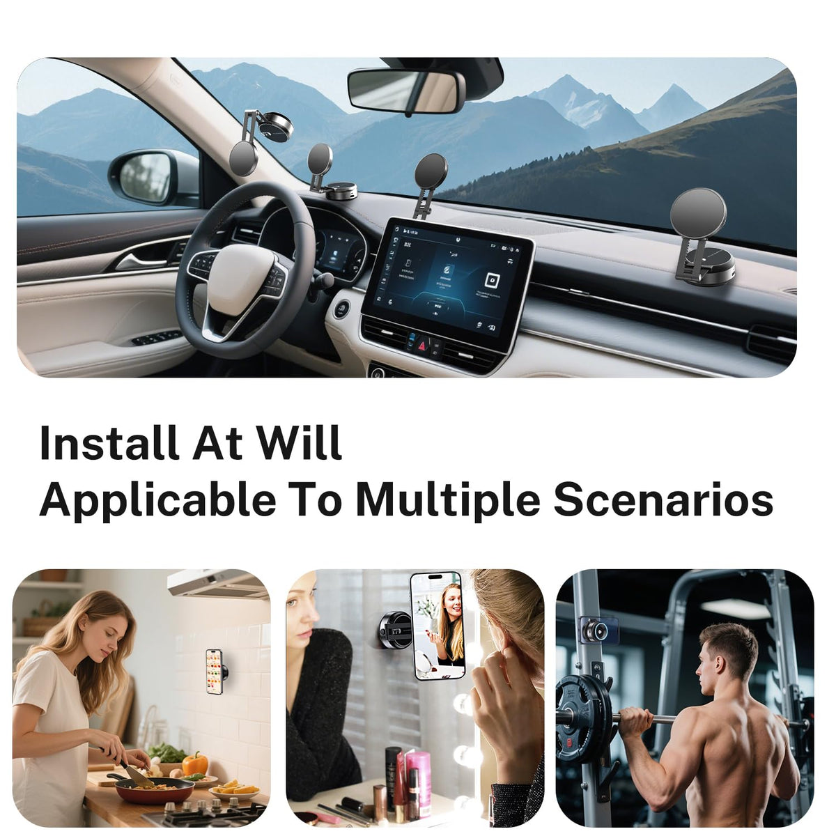 Jkoailiwi Foldable Magnetic Car Phone Mount, Hands-Free Adjustable Suction Cup Phone Mount, Vacuum Magnetic Phone Holder For Mag