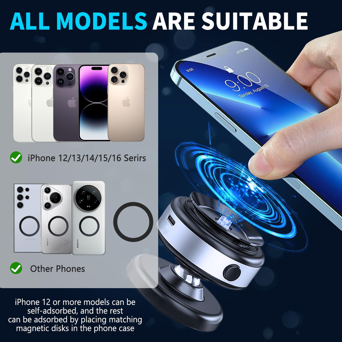 Joyye 360 Rotatable Car Magnetic Phone Holder, Electric Vacuum Magnetic Car Phone, Mount With Suction Cup, Suitable For Smooth A