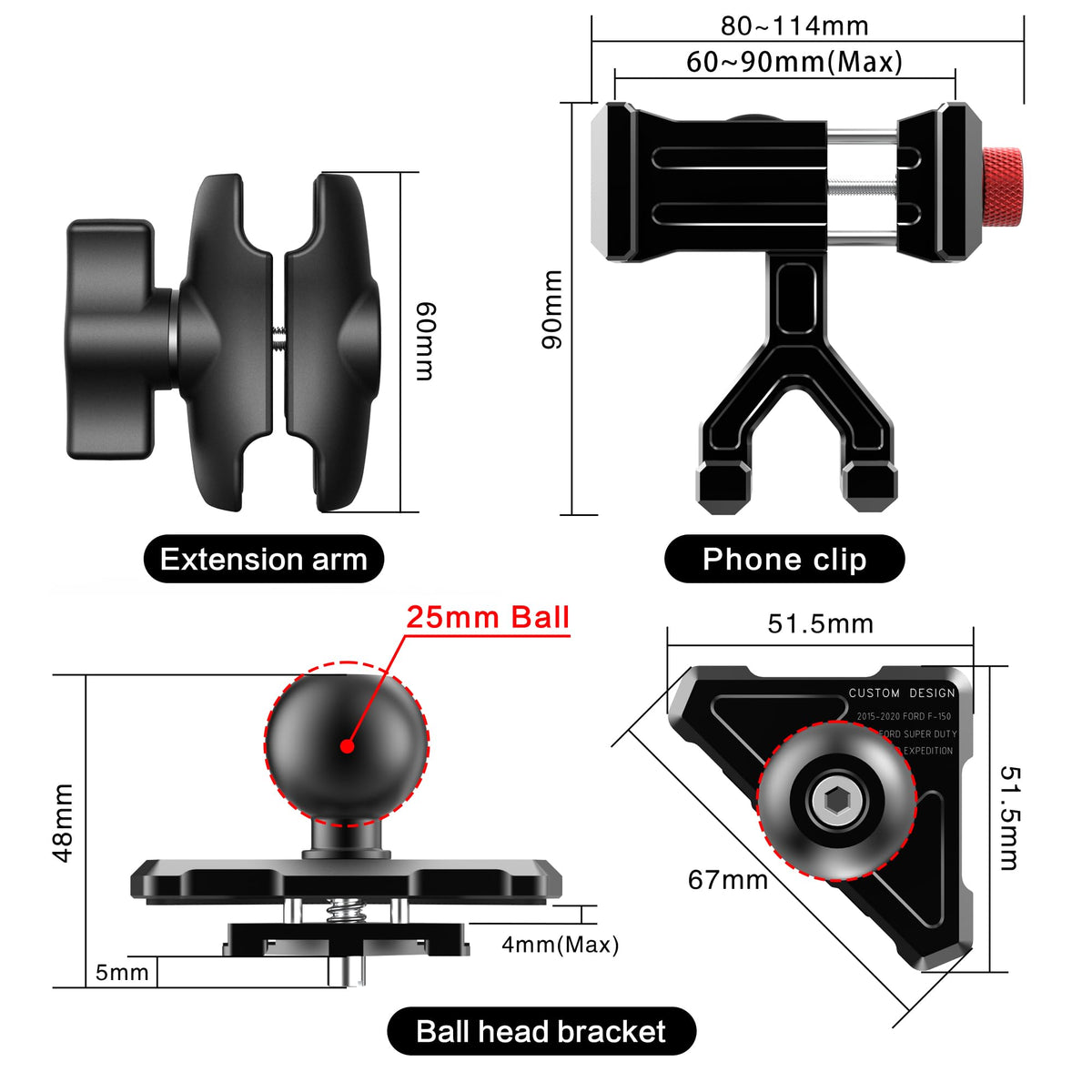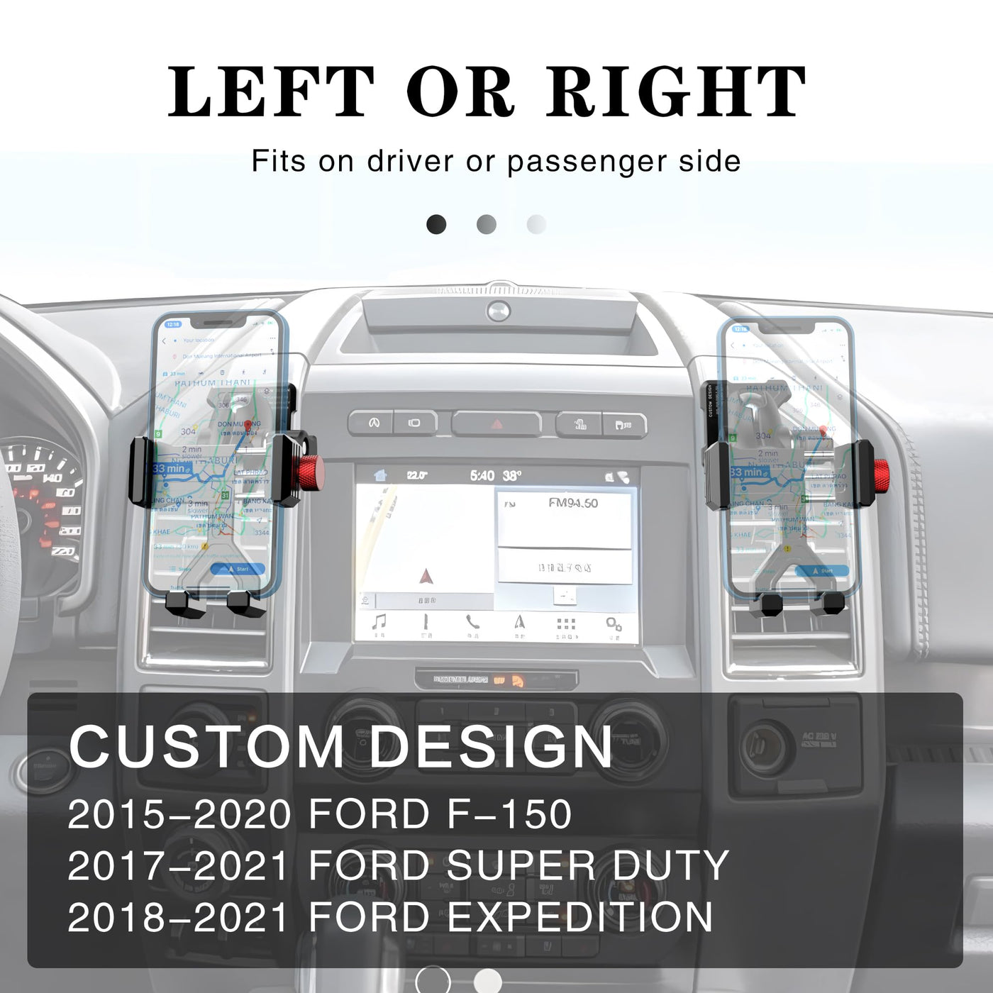 Wide Compatible?Aluminium Vent Phone Mount Designed Work Center Vents Compatible With Ford F-150 2015-2020, Super Duty 2017-2021, Expedition 2018-2021. (Note: Will Not Work With Other Vehicle Models). ?Firmly Hold Your Phone?Aluminum Ford F Phone Mount With Aluminium Locking/Opening Knobs Securely Holds Any Phone From 2.3 Inches [60 Mm] To 3.54 Inches [90 Mm] Wide. Rest Assured That Your Device Will Be Held Firmly In Place, Allowing You To Access It Easily And Ensuring It Remains Fully Functional Throughout Your Journey. ?360 Panoramic Rotation?Cell Phone Vent Holder For Ford F With Rotates 360 Degrees So You Can Enjoy The Best Viewing Angle While Driving. You Can Easily Adjust The Angle To Display Your Phone In Landscape Or Portrait Mode For Easy Navigation, Calls And Music On The Road. ?Easy To Use?Phone Holder For Ford F Super Duty 2017-2021 Installation Is Easy In Minutes With No Drilling Or Disassembly Required. The Mounting Location Is Also Ideal; It Does Not Block Any Vents And Does Not Interfere With Visibility Out Of The Windscreen.