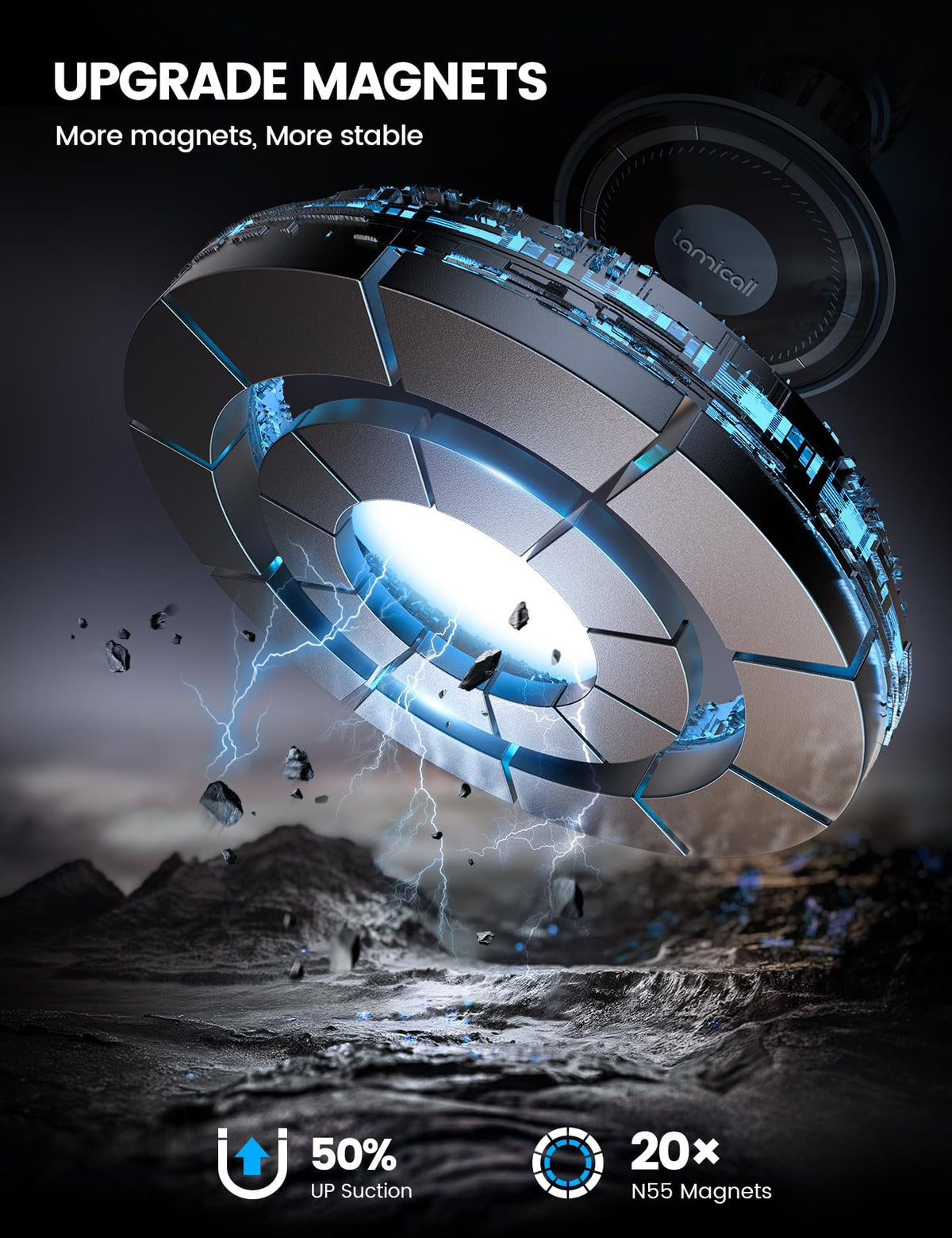 Lamicall For Magsafe Car Mount - [20X Strong Magnets] [Metal Hook] Magnetic Phone Holders For Your Car - 360 Rotation Car Phone