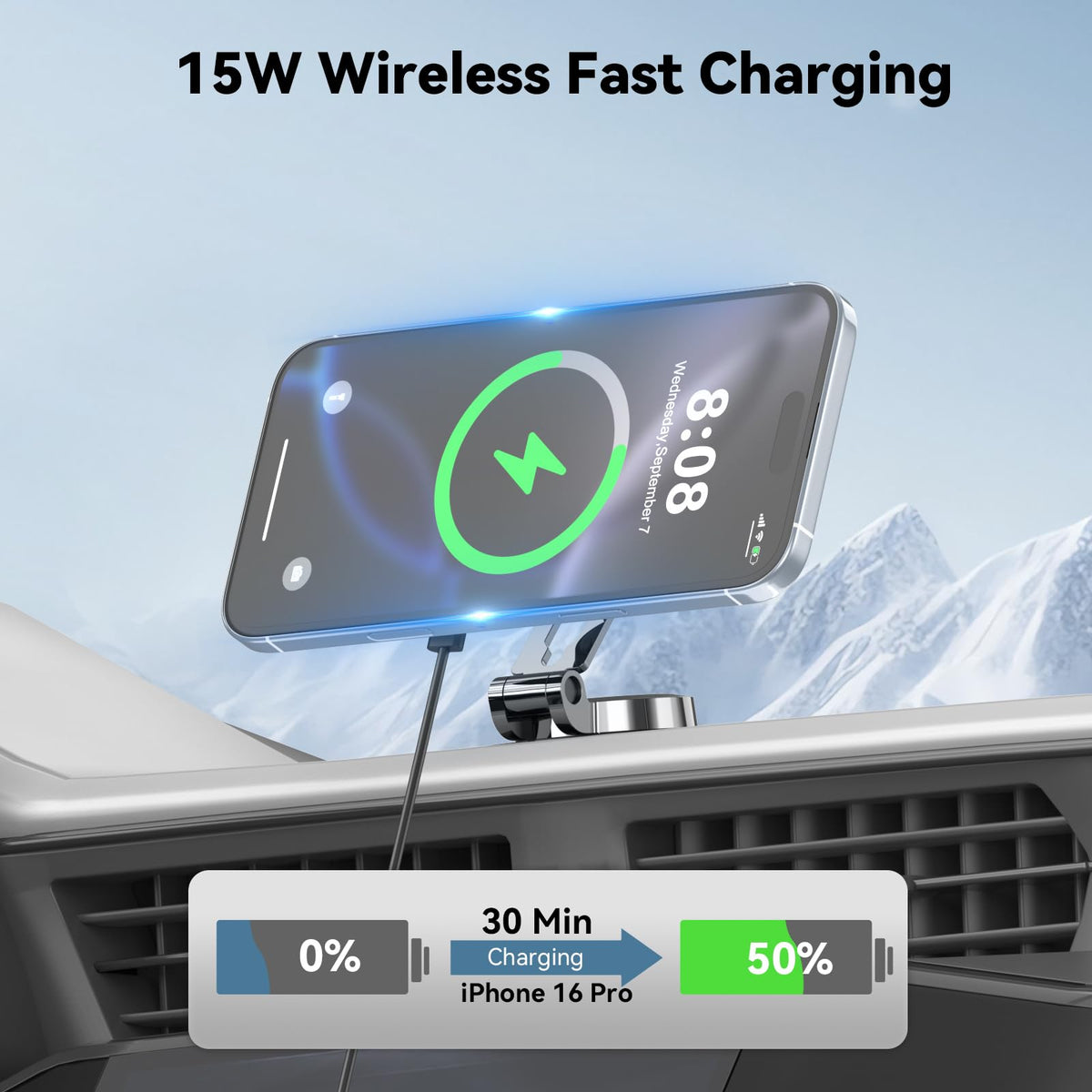 Lecork For Magsafe Car Mount Charger, 15W Magnetic Wireles Car Charger For Iphone 12 13 14 15 16 Series, Stick On Dashboard Phon