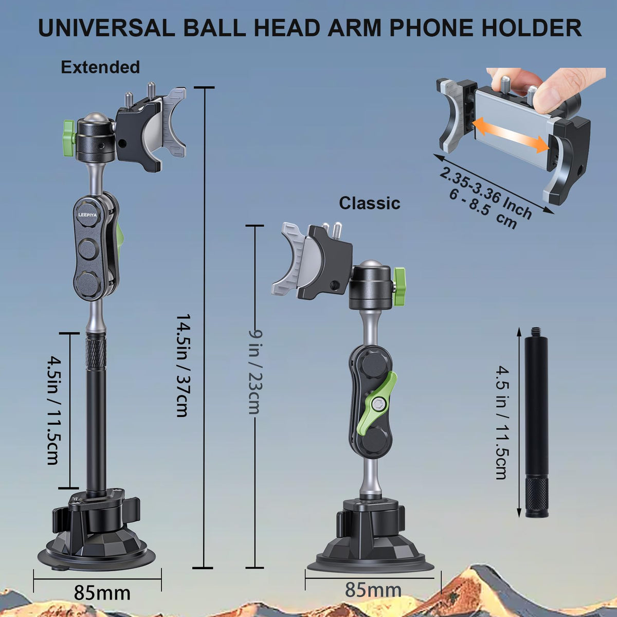 Leepiya Car Phone Mount Video Recording Universal Magic Arm Suction Car Phone Holder Mount Windshield Window Glass Dashboard Vlo
