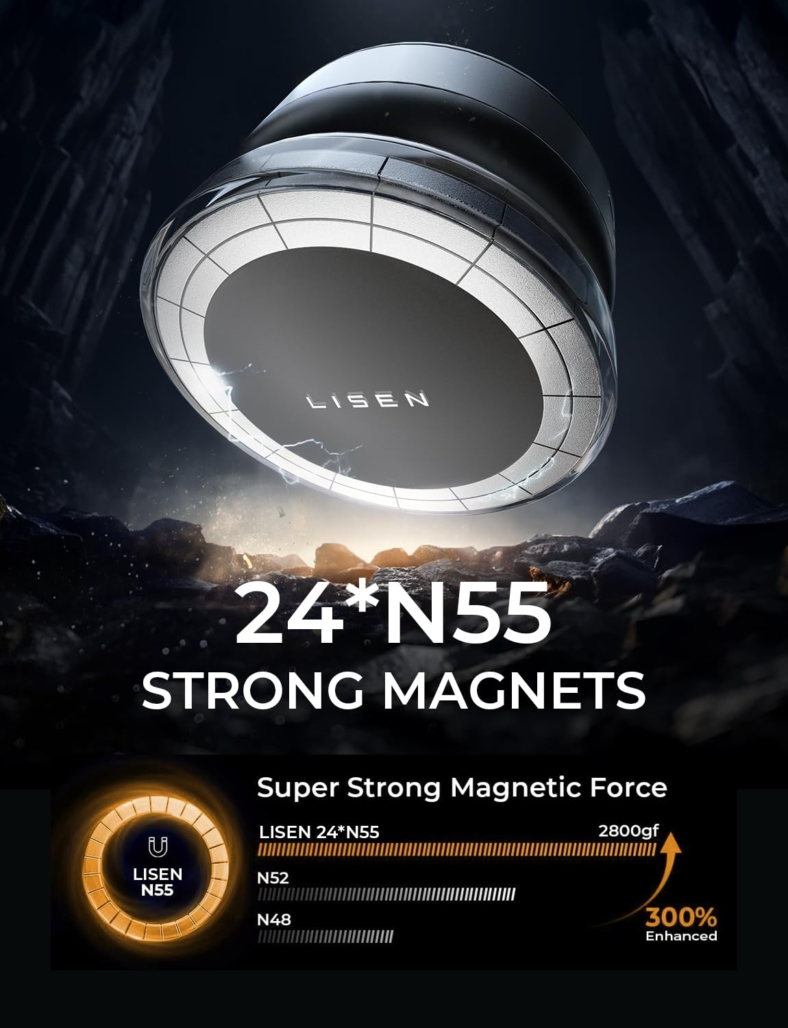 Lisen Portable Vacuum Magnetic Phone Holder Stand, Electric Vacuum Suction Phone Holder For Magsafe, Suction Cup Phone Mount Fol