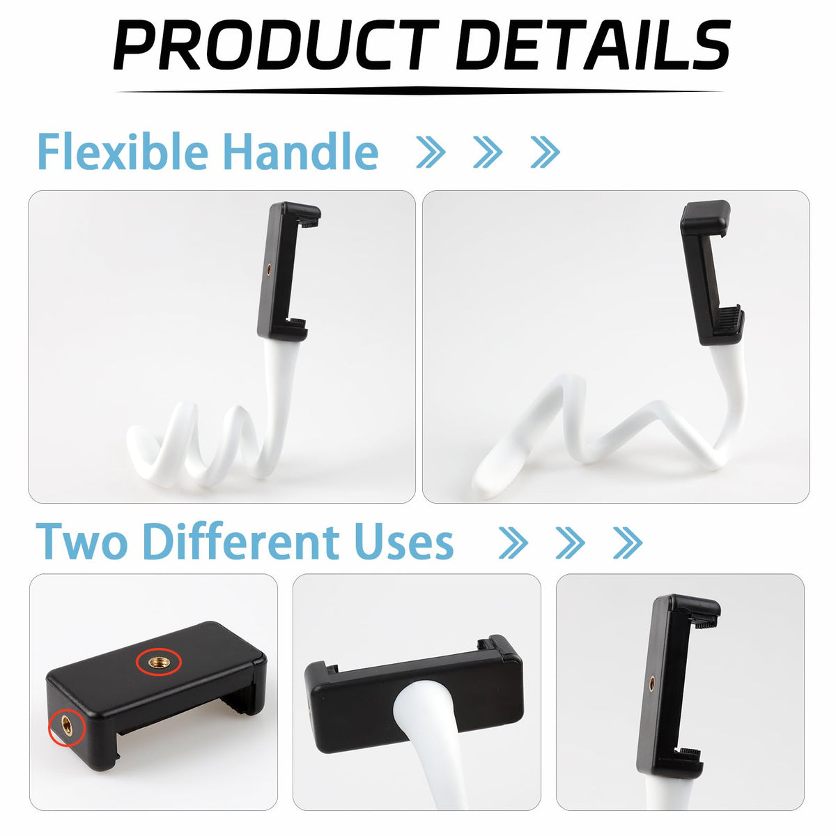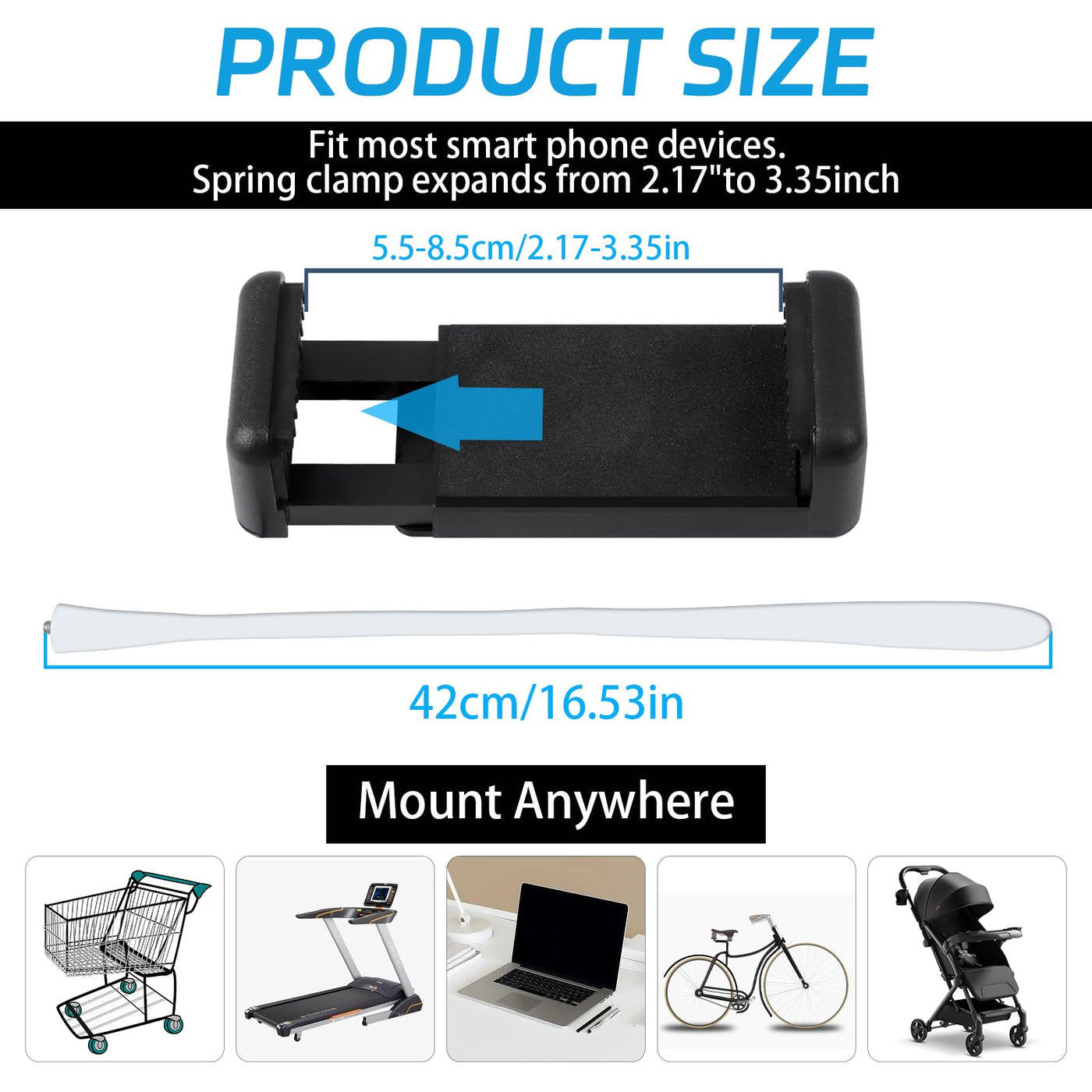 Specification: Product Name: Phone Holder For Bike Material: Quality Plastic And Silicone Color: Black And White Suitable Scenarios :Microphone Stands, Strollers, Treadmills, Bicycle Handlebars, Railings, Shopping Carts, And Beds. Package Includes: 1 X Stroller Phone Holder.