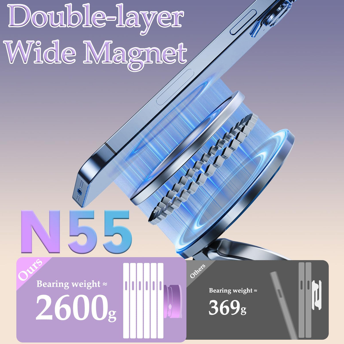 Longquan Upgraded 360 Vacuum Magnetic Car Phone Holder, Strong Suction Cup Phone Mount [89+Lbs Suction & 2600Gf Magnetic], Folda