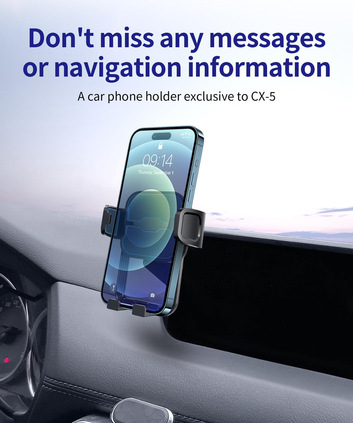 Specially Designed For 2017 2018 2019 2020 Mazda Cx-5 Accessories. This Phone Holder Is Installed On A 7 Inch Screen Only And Does Not Affect Screen Operation. Note: ?One - Touch Release?The Masergogo Car Phone Holder Is Equipped With A Quick - Release Button And Adjustable Clamping Arms. It Can Lock Or Release Your Phone In Just 0.3 Seconds. Why Choose Our Car Phone Holder? Specially Designed, Compatible With Vehicle Models. Unified Style, And Reliable Quality. Does Not Block The Air Vent. No Need To Look Down At Your Phone. One-Handed Operation. Triangular Fixation,Automatic Locking. Car Phone Holder Can 360Rotate. About Customer Service: Our Stands Firmly Behind Its Products And Customer Service. We Can Provide 100% Money Back Replacement Guaranty. Any Issues With Your Order, Please Contact Us, We Will Respond Within 24 Hours. Place Your Order With Gogo Store Today!