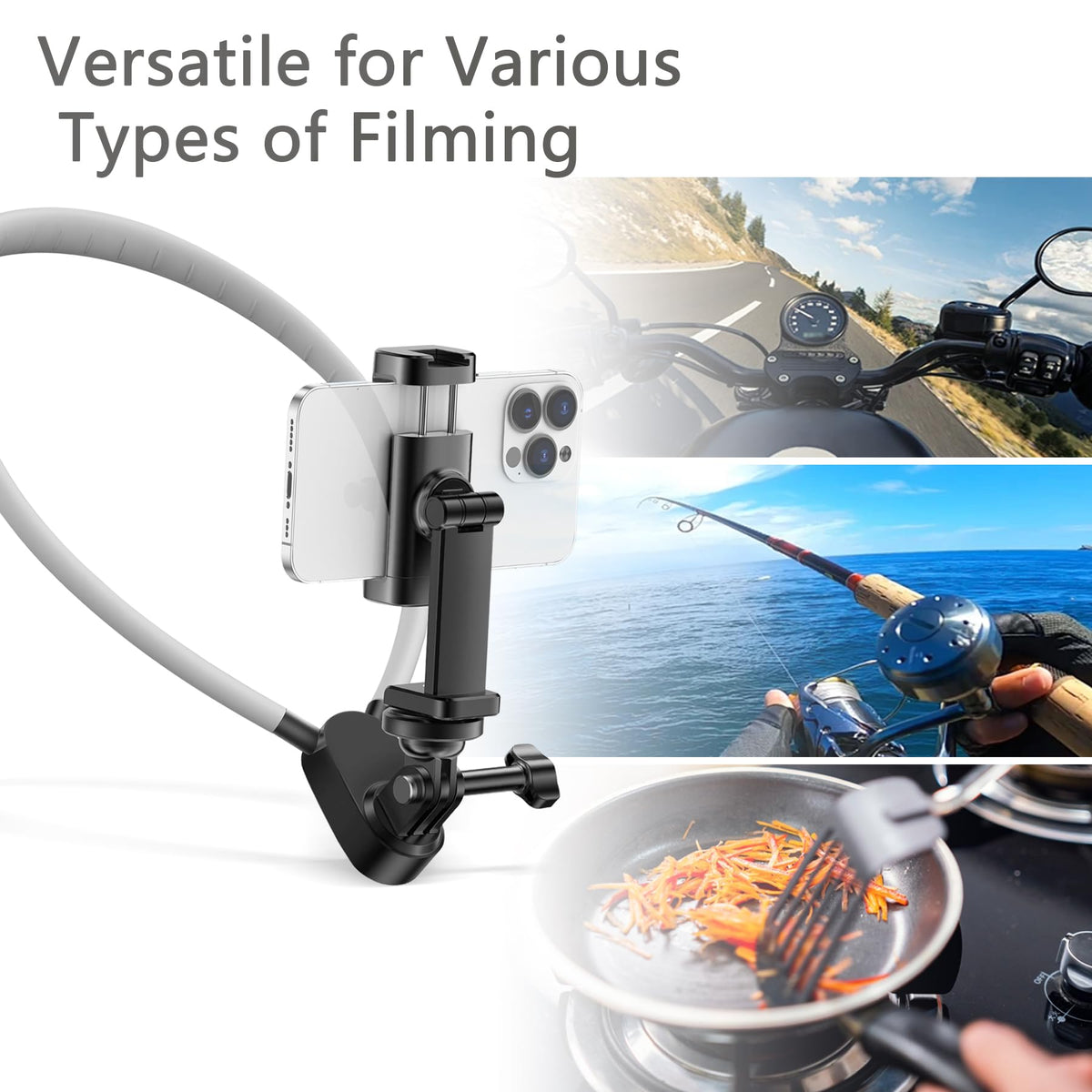 Neck Phone Holder, Hands Free Magnetic Neck-Mounted Phone Holder With Remote Control, Adjustable Pov/Vlog Chest Phone Mount, Com