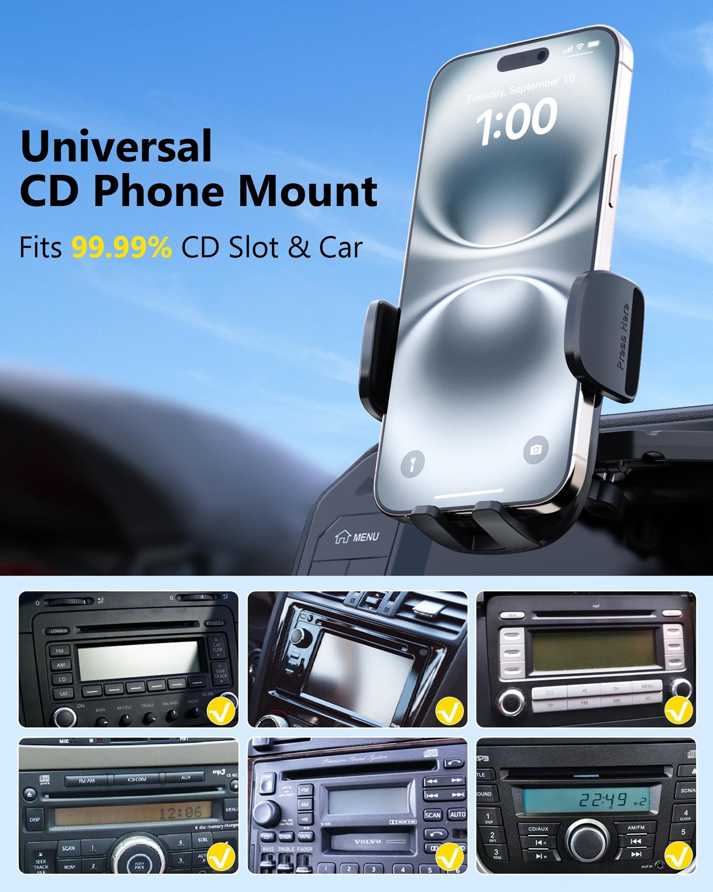 Ntmy Sturdy Cd Slot Phone Mount With One Hand Operation Design, Hands-Free Car Phone Holder Universally Compatible With All Ipho