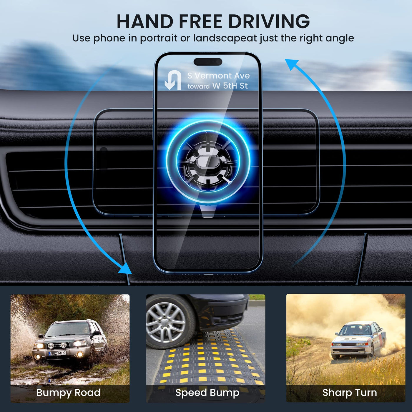 Pgu For Magsafe Car Mount, [Strongest Magnets][Unlimited Angles] Magnetic Phone Holder For Car Vent Cell Phone Holder Car Mount