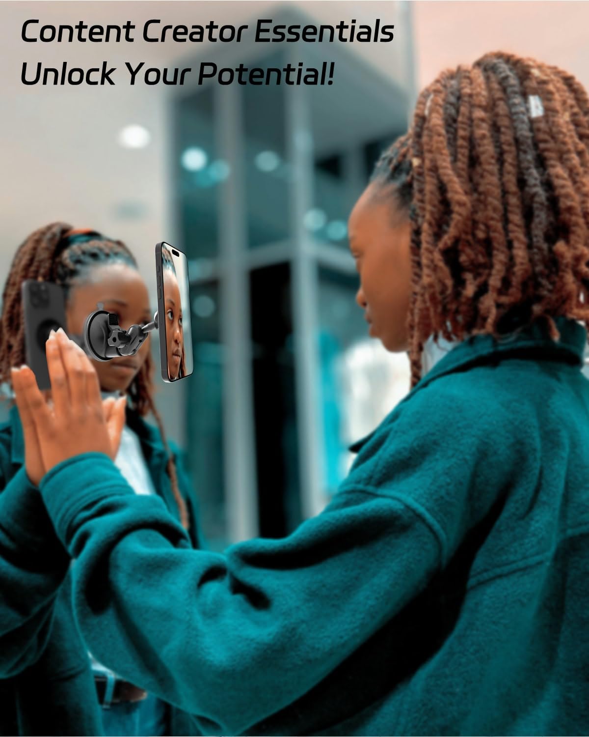 Quyee For Magsafe Universal Magnetic Phone Holder, Multi-Directional Dual 360 Degree Rotating Suction Cup Phone Wall Mount, Tiktok Youtube Vlog Video Recording Kit, Travel Essentials Accessories