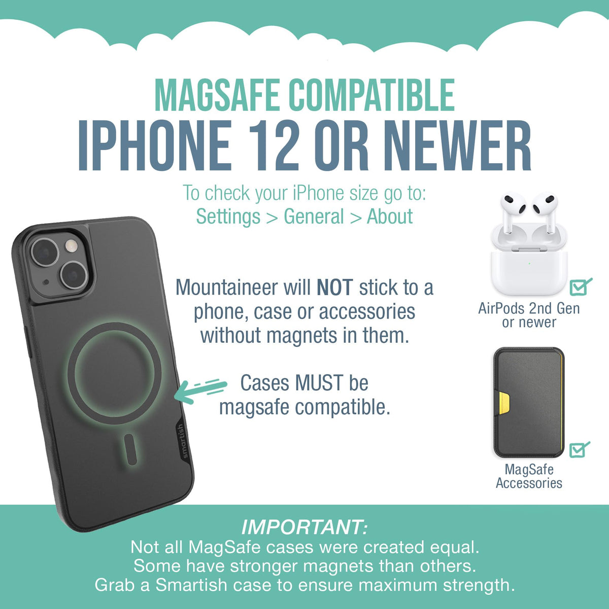 Smartish Magsafe Wall Mount - Mountaineer - Compatible With Apple Iphone 16/15/14/13/12 - Magnetic Stick On Adhesive Phone Holde