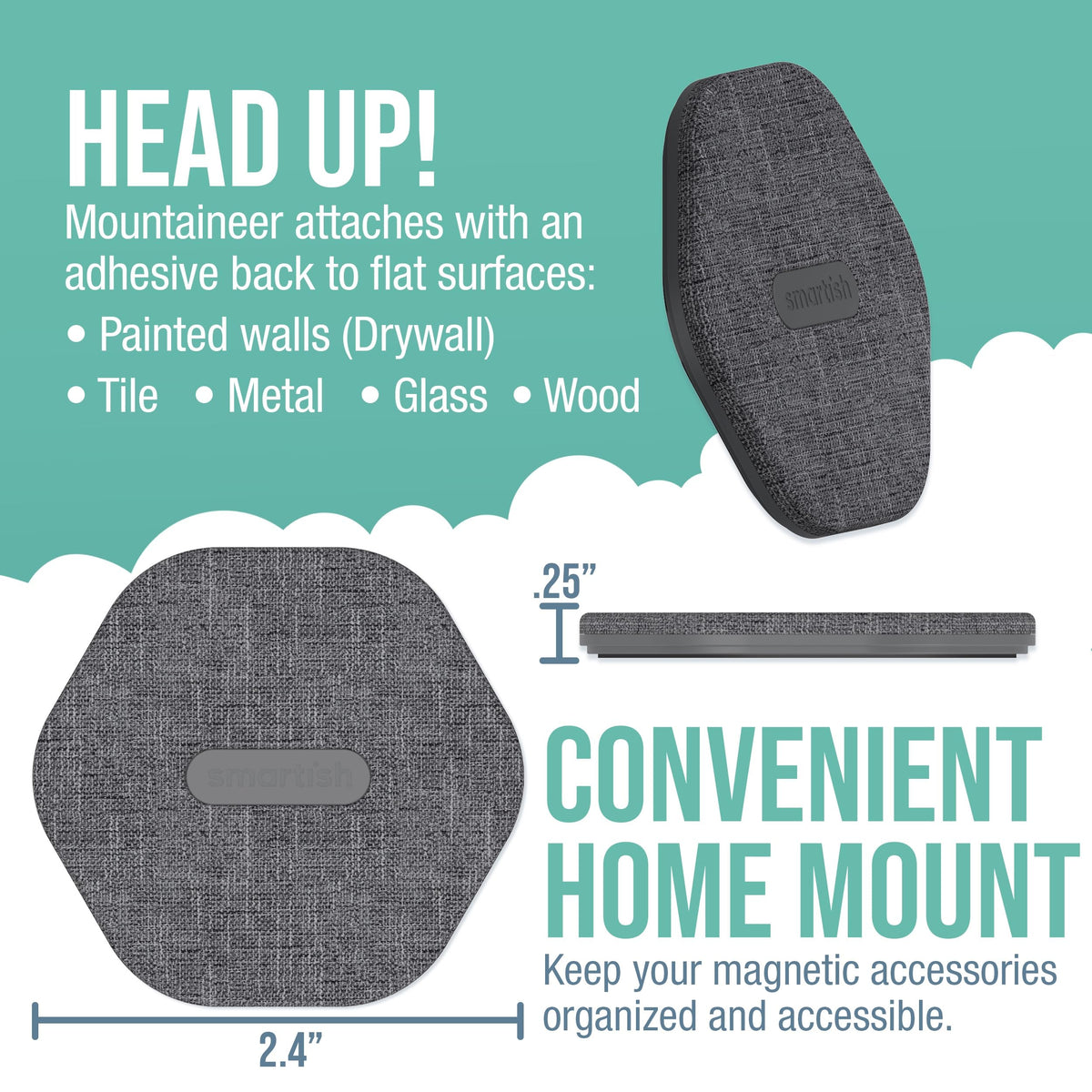 Meet Mountaineer: Magsafe Wall Mount By Smartish-An Effortlessly Stylish Way To Declutter And Organize Your Space. With Its Chic Heathered Fabric Exterior, This Wall Mount Brings A Touch Of Sophistication To Any Room, Offering Both A Practical Solution And A Cozy Vibe. Stick It To The Wall In Your Home For An Instant Upgrade That'S As Functional As It Is Fashionable. Mountaineer Is All About Blending Convenience With Aesthetics, Making It The Perfect Addition To Modern Living. Say Goodbye To The Mess And Hello To A More Organized, Elevated Home With Mountaineer: Wall Mount By Smartish-Because Your Space Should Reflect Your Style Effortlessly.