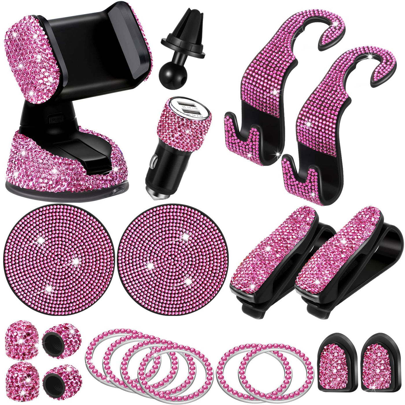 Feature: Nice Gift: Bling Car Accessories Set Is Shiny And Elegant, Bright And Glittery Appearance Suit Most People Fine. It Be A Nice Choice As Gift For Your Girlfriend, Friend, Parents, Spouse And More, Making His Or Her Car More Attractive. Usb Car Adapter: Bling Dual Port Usb Car Adapter Can Be Applied For 2 Devices At Same Time, Convenient For You To Use. And The Quality Stainless Steel Tip Can Be Applied As An Emergency Hammer For Emergency Case, A Practical Tool In Daily Life. Specifications: Material: Rhinestone, Zinc Alloy, Plastic, Silicone Color: As Picture Shows Package Includes: 1 X Bling Car Phone Mount Holder 1 X Dual Port Fast Usb Adapter Car Adapter 4 X Bling Tire Stem Caps 6 X Bling Ignition Rings 2 X Large Bling Hooks 2 X Small Bling Hooks 2 X Car Pads 2 X Car Visor Glasses Holders Warm Notes: Please Allow Slight Size Error Due To Manual Measurement. The Colors May Exist Slight Difference Due To Different Screen. Small And Inedible Items, Please Keep Away From Little Kids To Avoid Accidental Ingestion.