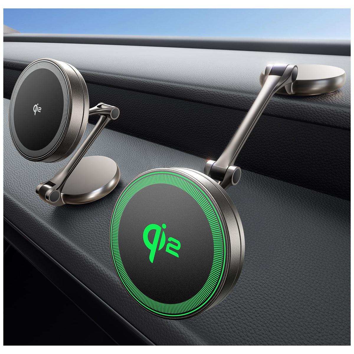 Upgrade Your Car'S Charging Capabilities With This Sleek And Efficient Car Mount Charger. Certified By Qi2 For 15W Fast Charging, It Delivers Rapid Power To Your Devices While Maintaining Optimal Temperature Control For Enhanced Safety. The Magnetic Alignment Ensures Precise Positioning Between The Charger And Your Device, Maximizing Charging Efficiency. This Versatile Accessory Doubles As A Sturdy Phone Mount, Featuring A 360-Degree Rotating Base And An Adjustable Metal Arm For Optimal Viewing Angles. Crafted From High-Quality Zinc Alloy, It Offers Exceptional Durability And A Secure Grip To Prevent Slippage. With Its Detachable Dual-Sided Magnetic Charging Pad, You Can Use It As A Standalone Charger When Needed. Elevate Your Driving Experience With This Powerful And Convenient Car Mount Charger.