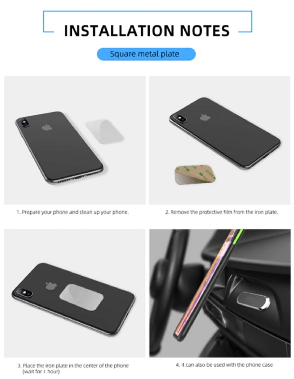 Made Of Premium Aluminum Alloy, Four Powerful Neodymium Magnets, Luminous Silicone Ring And 3M Soft Liquid Silicone Gel. | Easy Installation Just Stick The Holder To The Dashboard Or Any Other Flat Surface, And With A Metal Plate On Your Phone Or Case Or Built-In Plate Case, Then Put Your Phone To The Mount, And When You Want To Take Your Phone Off, Just Slide It From One Side To The Other. Powerful Magnets Ensures Your Smartphone Stay Securely On The Mount And Won 'T Bring Any Effect To Your Phone Or Gps Signal. | Magnet Is Strong Enough To Hold Up To 10 Oz.