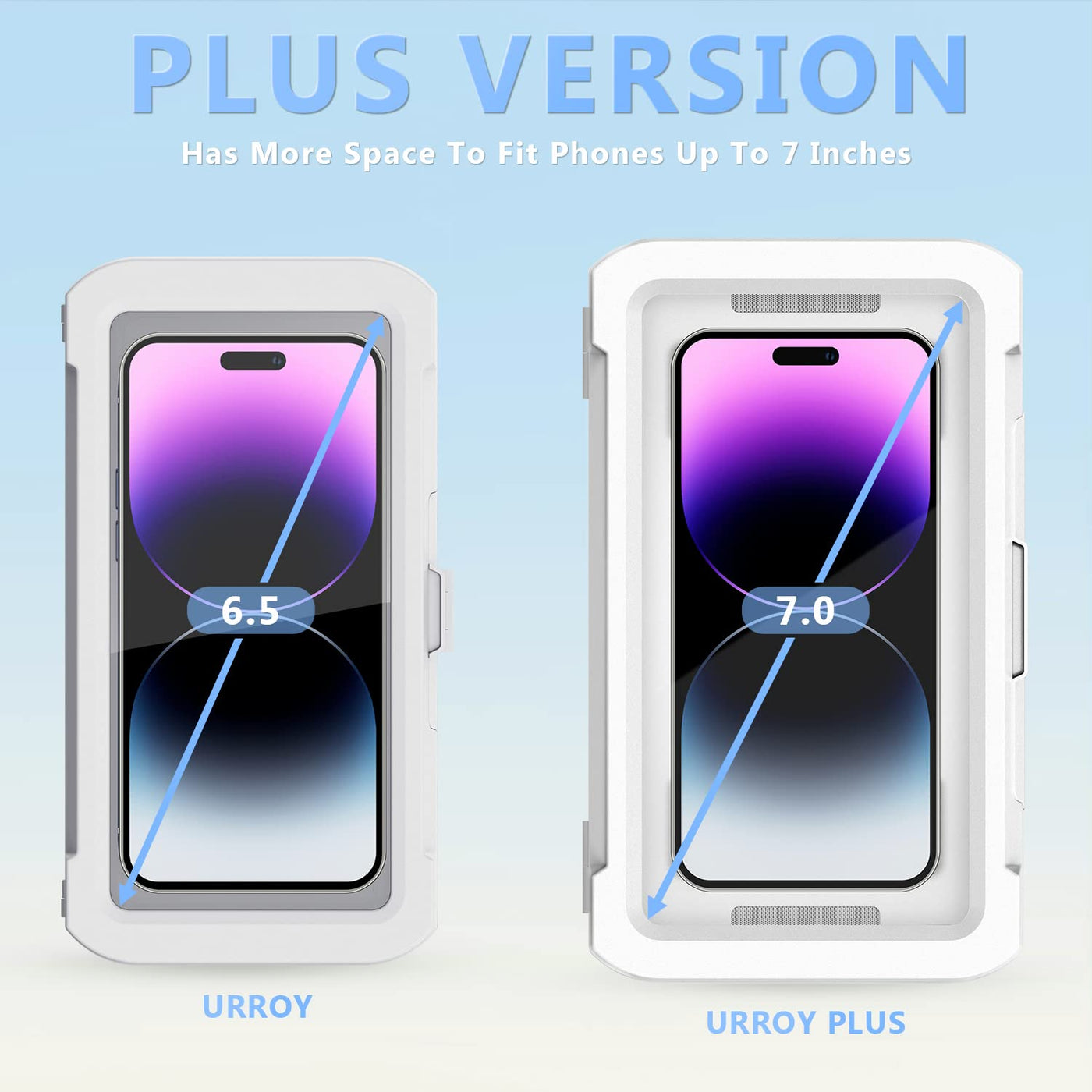 Q: What smartphones are compatible with the URROY Shower Phone Holder?A: The URROY Shower Phone Holder is designed to accommodate smartphones up to 7 inches in size. This includes popular models such as the iPhone 15 series, iPhone 14 Pro Max, various Samsung Galaxy models like the S23 Ultra, and many others from brands like Google, LG, and Motorola.