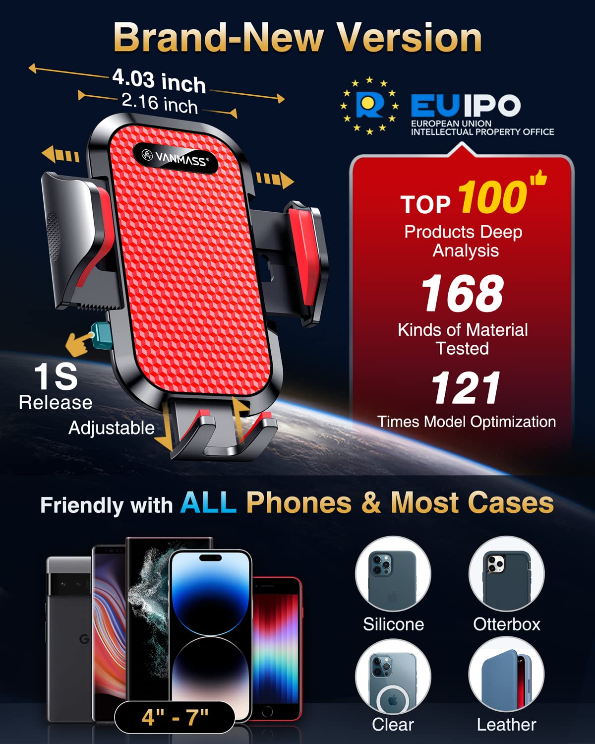 Vanmass [Pro Version] Universal Car Phone Mount [Super Suction Cup] Dashboard Phone Holder, Handsfree Windshield Dash Vent Phone