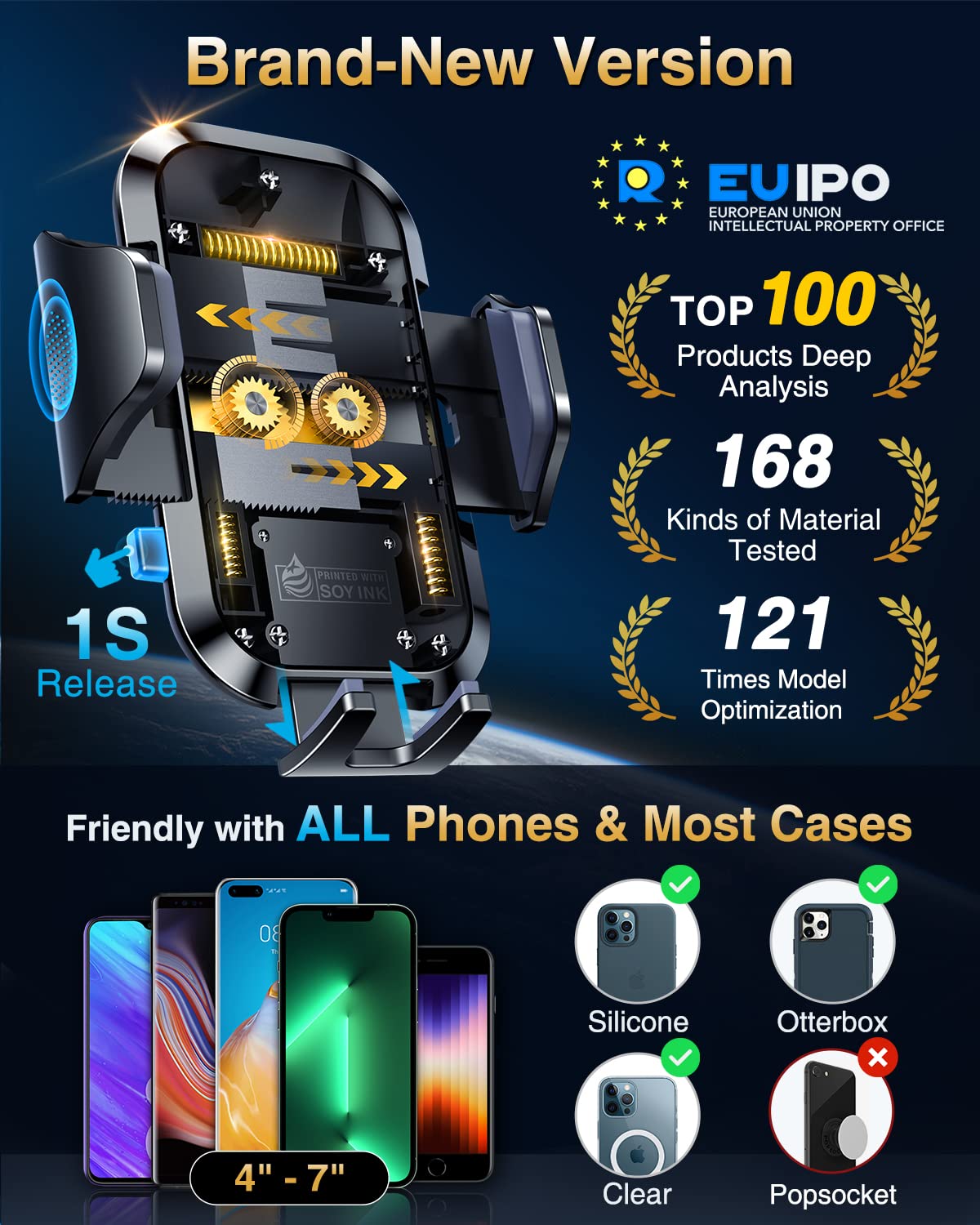 Vanmass [Pro Version Universal Car Phone Mount [Super Suction Cup] Dashboard Phone Holder Stand, Handsfree Windshield Dash Air V