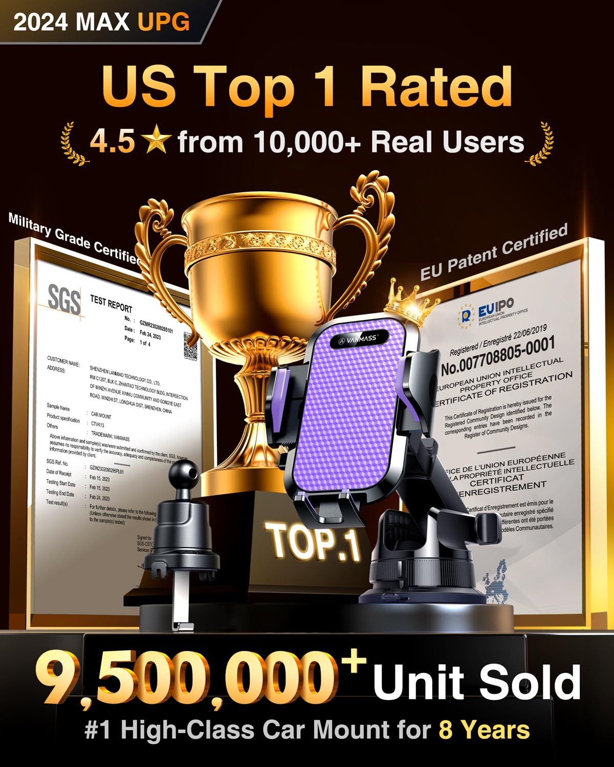 ?True Military-Grade Certified, 2024 Ultimate Car Mount?Vanmass, The Leader In High-End Car Phone Holder. Over The Past 8 Years, We Have Listened To The Voices Of Millions Of Users, Rigorously Tested To Military Grade Standards (Stability, Compatibility, Flexibility, Security, Durability). Finally, We Overcome All Weaknesses To Design The Ultimate Model That We Are Most Satisfied With. This Item Obtained International Military-Grade Shockproof Certification No. Gzmr220601855501