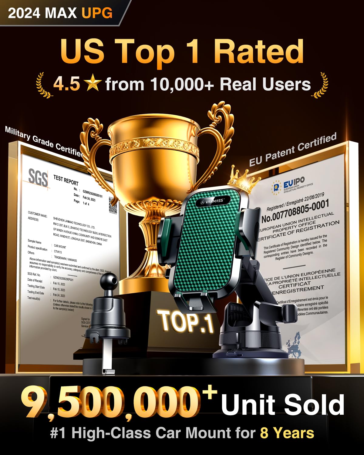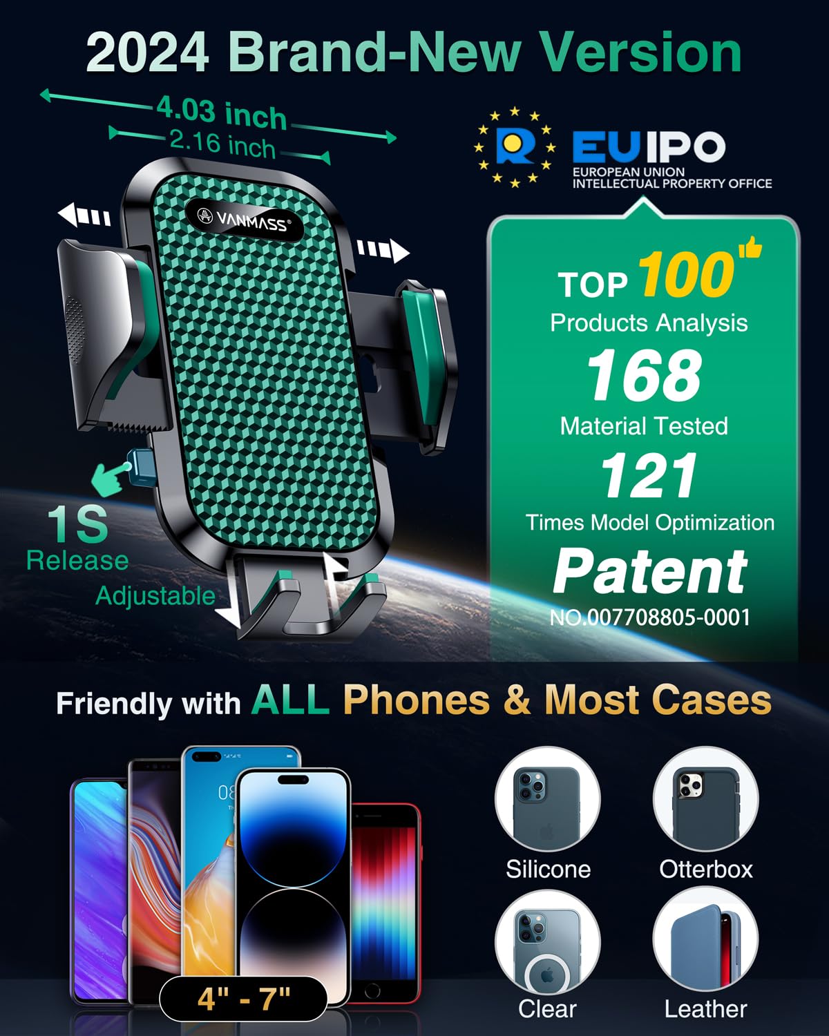Vanmass [True Military Grade] Car Phone Holder [2024 Strongest Suction & Clip] Cell Phone Mount For Dashboard Windshield Vent Tr