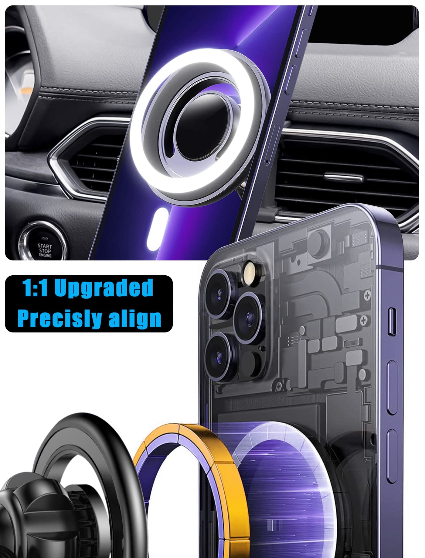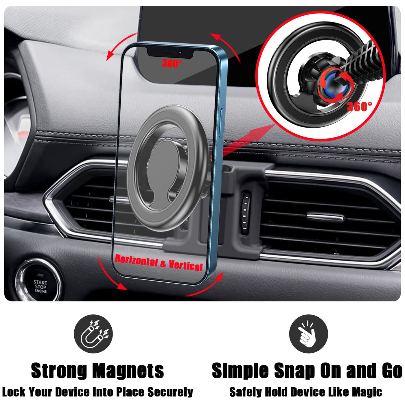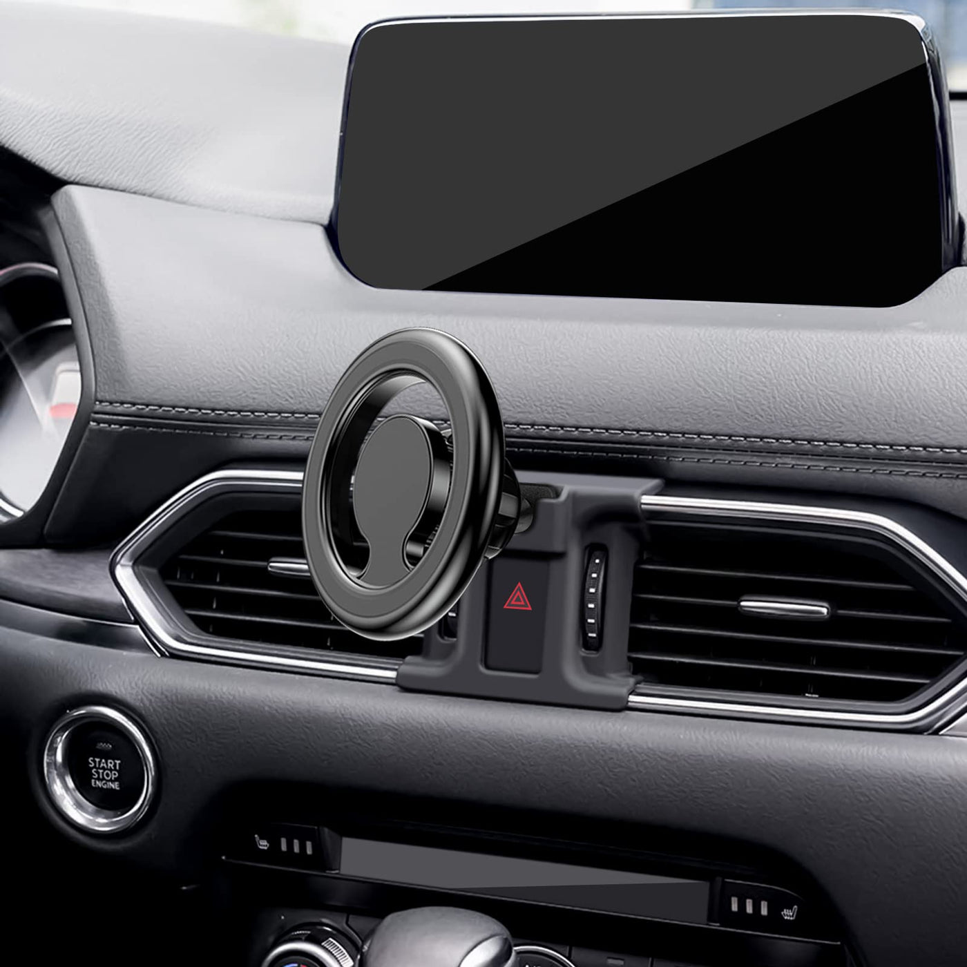 ?Only Fit For?Magnetic Car Phone Holder Fit For Mazda Cx5 2017-2024 And Cx-8. Note: Not For Mazda Cx5 2016. ?Design For Iphone 14/ 13/ 12 Series Phones? This Magnetic Car Phone Mount Can Hold Iphone 14 13 12 Pro Max Mini Phones Directly; This Magnetic Phone Holder For Car Also Works For Original Official Mag-Safe Case And Other Brands' Built-In Mag-Safe Cases, No Need To Use The Additional Magnet Plates. Most Popular Gift For Families And Friends. ?Custom Made Holder?Phone Holder Is The Best Option For The Newer Mazda Cx5. If You Own Cx5 You Know There Isn'T A Lot Of Place To Mount Your Phone. This Is An Ingenious Way To Do It. Snaps Into Place With No Adhesive Or Suction Cups And The Placement Is Perfect In The Center. The Closed Magnet Field Wont Impact Your Phone Signal At All. With The Magnet Cell Phone Car Mount, Feel Free To Use Navigation Or Other Function Normally And Smoothly. ?Work For All Phones?This Magnetic Car Phone Holder Works For All Phones & Cases. We Provide Extra 2 Metal Rings(Gifts) On This Magnetic Phone Holder For Car. Stick The Metal Ring On The Phone Or Case. The Super Magnet Power Of The Phone Magnet For Car Holds Your Phone Absolutely Still And Steadily Even On The Bumpiest Road Or Cobblestone Street. Surprisingly, The Hollowed-Out Ring Design Of This Magnet Cell Phone Holder For Car Wont Block The Wireless Charging Function. ?Easy To Install?Its The Perfect Phone Holder For Mazda Cx5. No Tools Are Needed. Easy To Install. Hold Is Very Secure. Perfectly Cut So It Doesnt Block Any Buttons Or Dials. Adjust The Angle Freely, Provide A Good View When You Drive On Road. Will Make Your Driving Safer And More Comfortable. ?360 Rotaion?Holds Phone Strongly In Both Landscape And Portrait. Great Suction, Tilts, Rotates, And Allows You To Control The Vents. Can Easily Spin To A Different Position When Needed And Not Worry About The Phone Falling. This Mag-Safe Phone Holder Is One-Hand Operation Design.