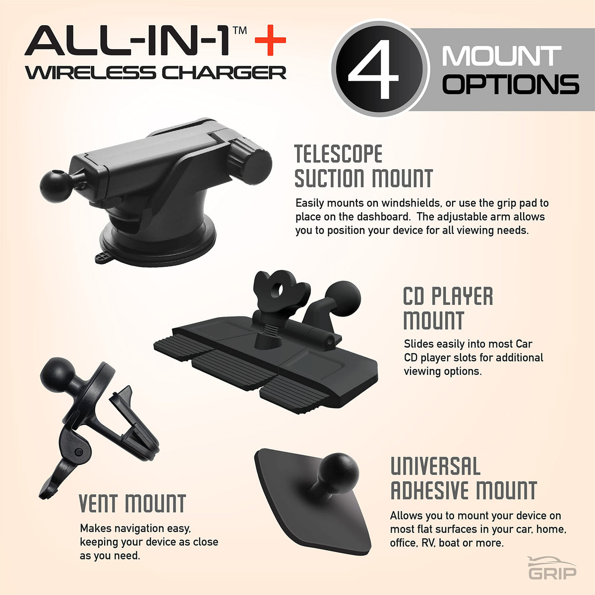 Q: What is included in the package with the car mount?A: The package includes the 10W AutoGrip Wireless Car Charger, a Qualcomm 3.0 Car Charger, a 3 ft. USB-C charging cable, and all necessary mounting accessories for easy installation.