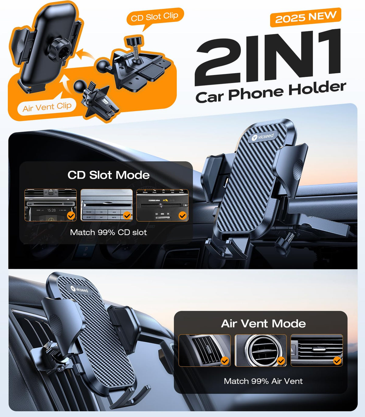 Vicseed Phone Holder Car - Most Stable, Sturdy And Safe, Multi-Function Phone Holder Car Makes Your Hands Free. Vicseed 2025 Ultra Stable Latest Sleek Design Car Phone Mount Cd Slot And Air Vent. Simple But Unique! Really Strong And Durable Car Phone Mount, In Order To Accompany Your Every Journey. The Most Secure Protection Cell Phone Holder Car: Soft Silicone Air Cushions Applied On This Cell Phone Car Mount All Around Provide The Best Protection For Your Expensive Cell Phone, No Scratches. Ultra Stable Phone Mount Car: 2 In 1 Cd Slot, Air Vent Phone Holder For Car Adopted The Latest Process And The Quality Sturdiness Test On The Iphone 15 Pro Max Car Mount, 50X Stronger Than The Normal Ones. Thick Cases Friendly Iphone Car Mount: Vicseed Car Phone Holder Mount Compatible With All 4-7 Inch Cell Phones With Thick Case. The Car Mount For Iphone Fits Perfectly Also Won'T Block Buttons. Flexible And Comfortable Viewing Angle Phone Car Mount: With 360 Degrees Of Rotation Function, You Could Use Navigations In Landscape Mode Or Swivel To Any Angle You Want. One-Touch Quick Release Iphone Holder For Car: One Button & One Hand & One Second Make Easy Operation Happen To This Iphone 15 Pro Max Car Mount. Phone Holder Car, Car Phone Holder, Car Phone Mount, Phone Mount For Car, Cell Phone Holder For Car, Cell Phone Car Mount, Phone Holder For Car, Car Mount For Iphone, Car Phone Holder Mount, Iphone Car Mount, Car Mount, Phone Car Mount, Iphone Holder For Car, Iphone Car Holder, Iphone 16 Car Mount, Iphone 16 Car Holder, Iphone 15 Car Mount, Car Vent Phone Mount, Iphone 15 Pro Max Car Mount, Car Holder For Iphone, Car Holder, Phone Holder For Car Vent, Car Iphone Holder, Cd Phone Holder For Car, Vent Phone Mount For Car, Iphone 15 Pro Car Mount, Car Phone Holder Vent, Iphone 15 Car Mount, Iphone 15 Pro Max Car Holder, Cd Player Phone Mount, Cd Slot Phone Mount, Car Phone Holder Cd Slot Mount, Iphone 14 Car Mount, Iphone 14 Pro Max Car Mount, Iphone 14 Pro Max Car Holder