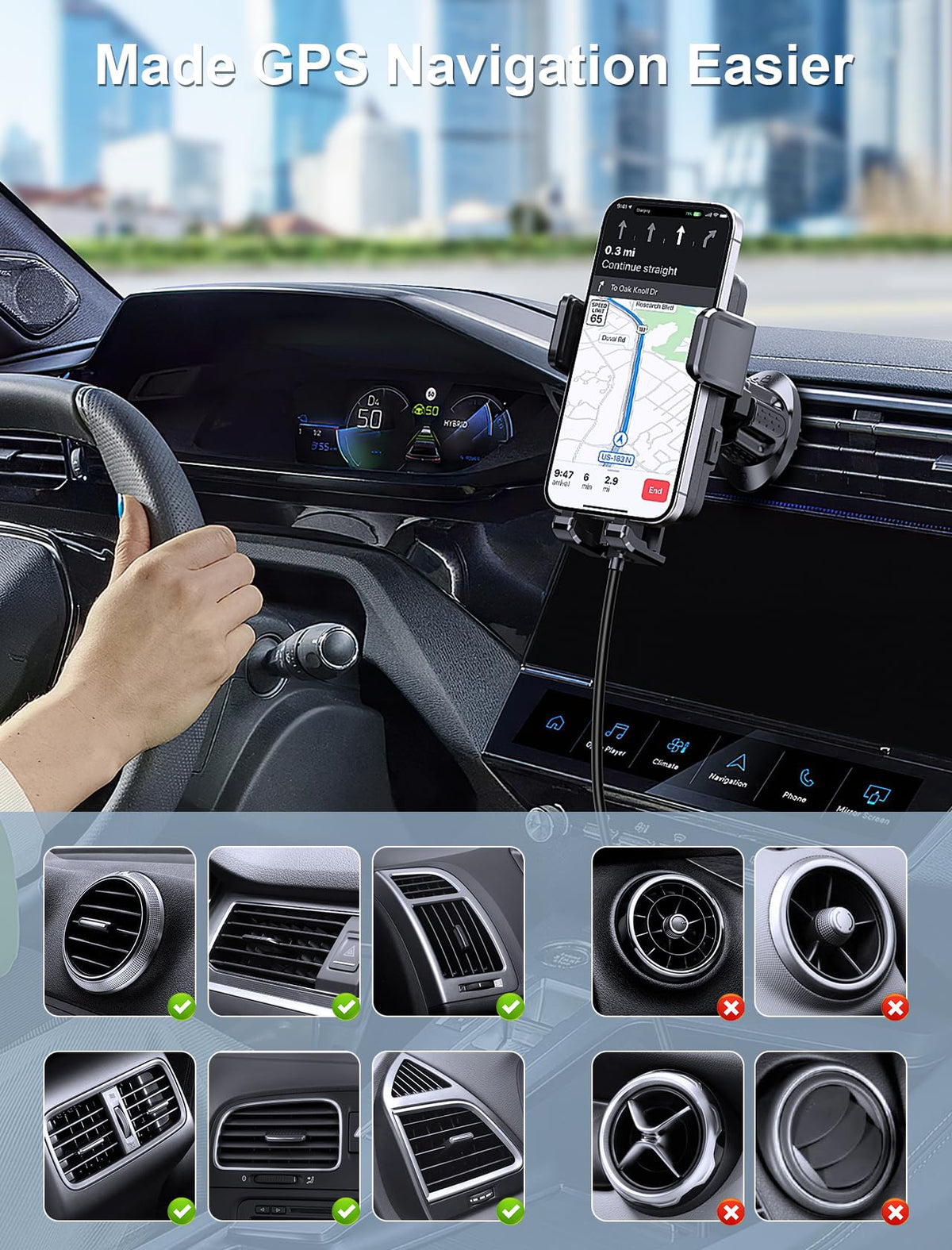 Wireless Car Charger, Mokpr 15W Fast Charging Auto Clamping Air Vent Car Phone Holder With Led Light Car Charger For Iphone 16 1