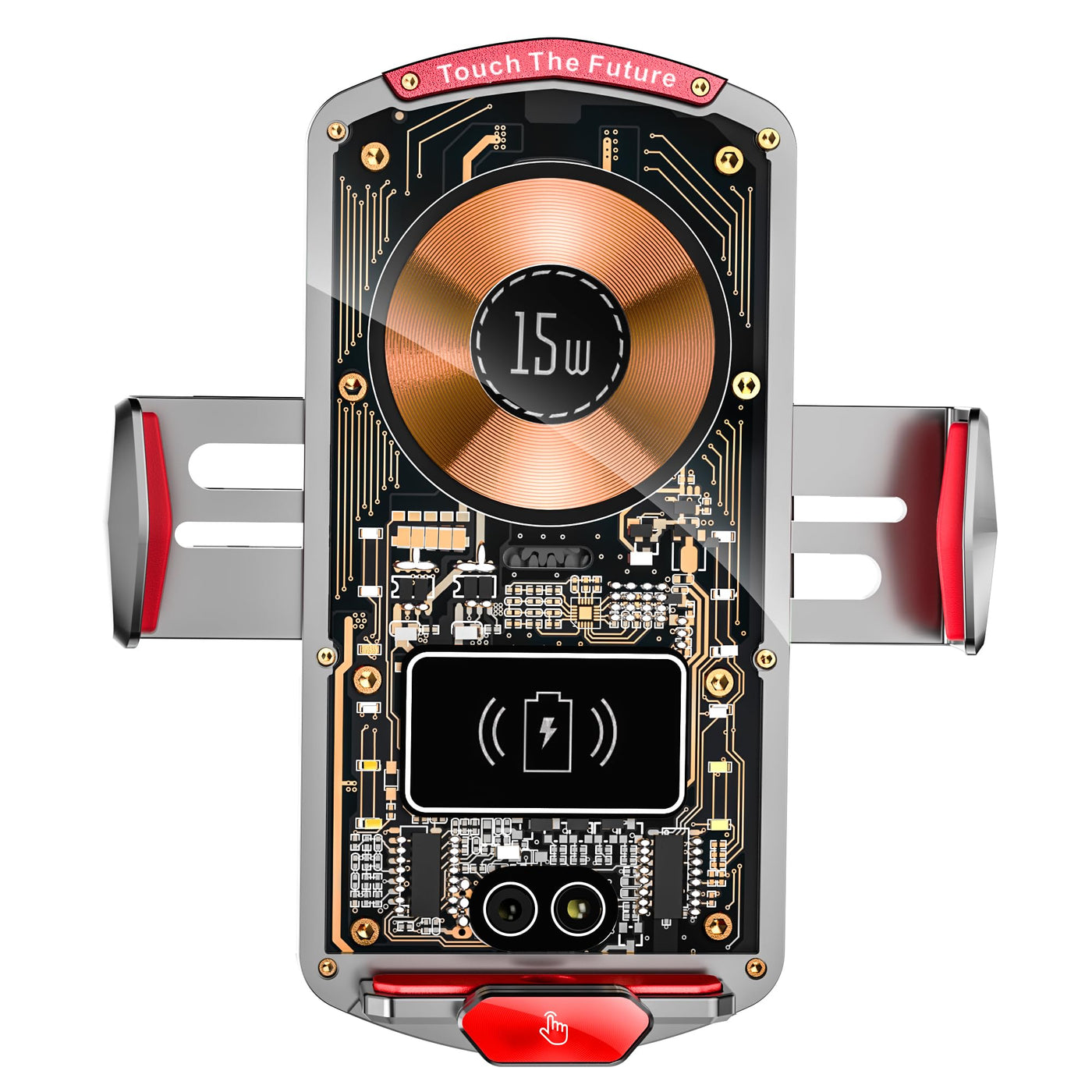 Wireless Car Charger Mount,Phone Holder,15W Fast Charging, Air Vent Clamp,Auto Clamping,360 Rotating Ball Joint,Transparent Case
