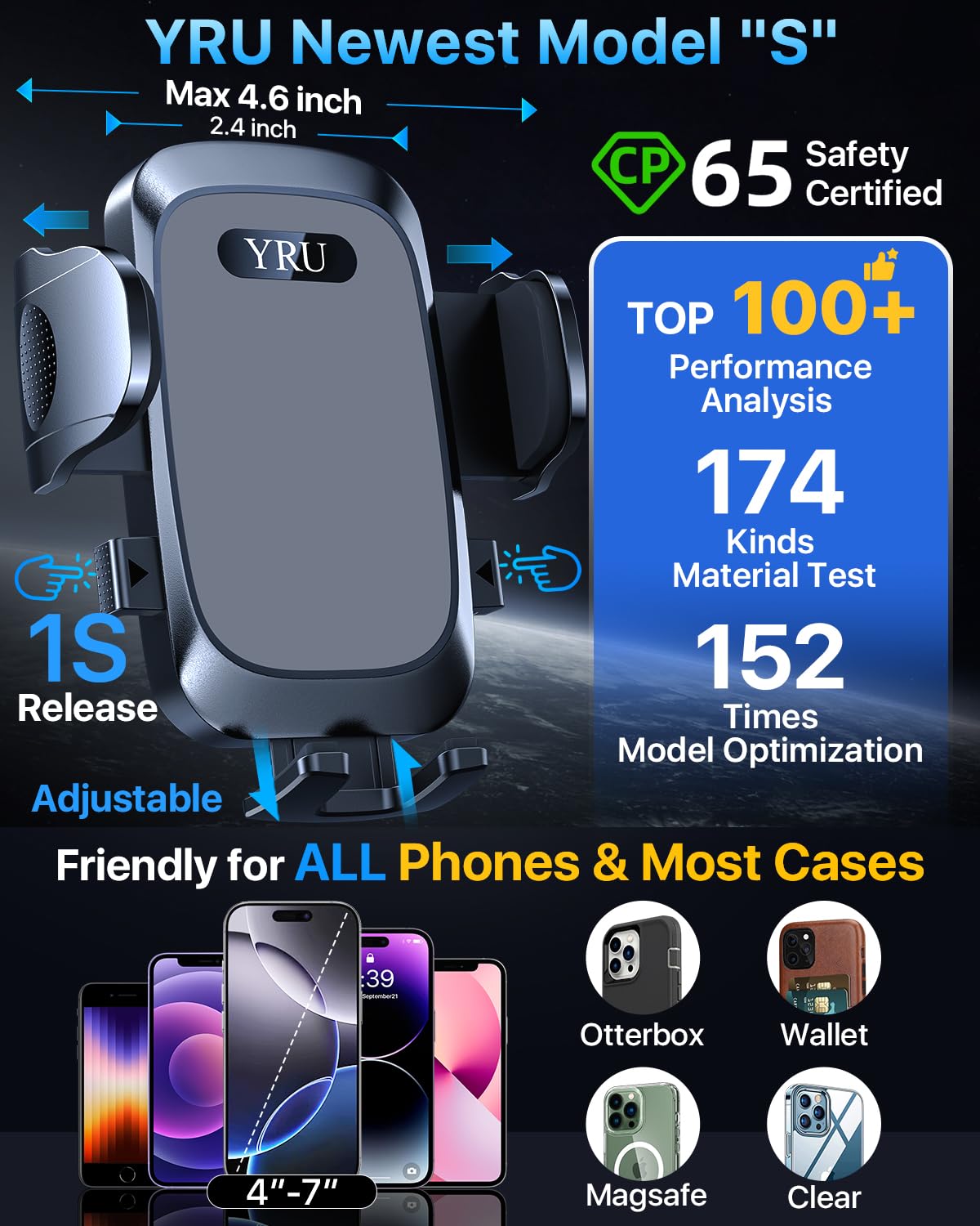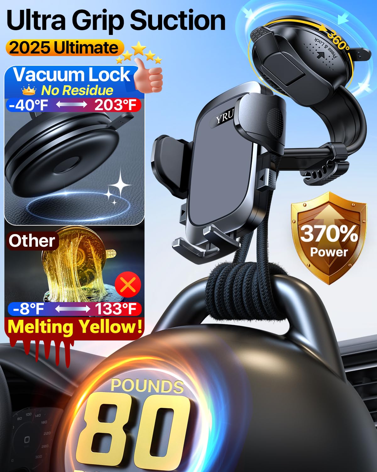 Yru [2025 Ultimate Car Phone Holder Mount [Bendable & Adjustable Aluminum Arm] Cell Phone Holder For Car Dashboard Windshield Ph
