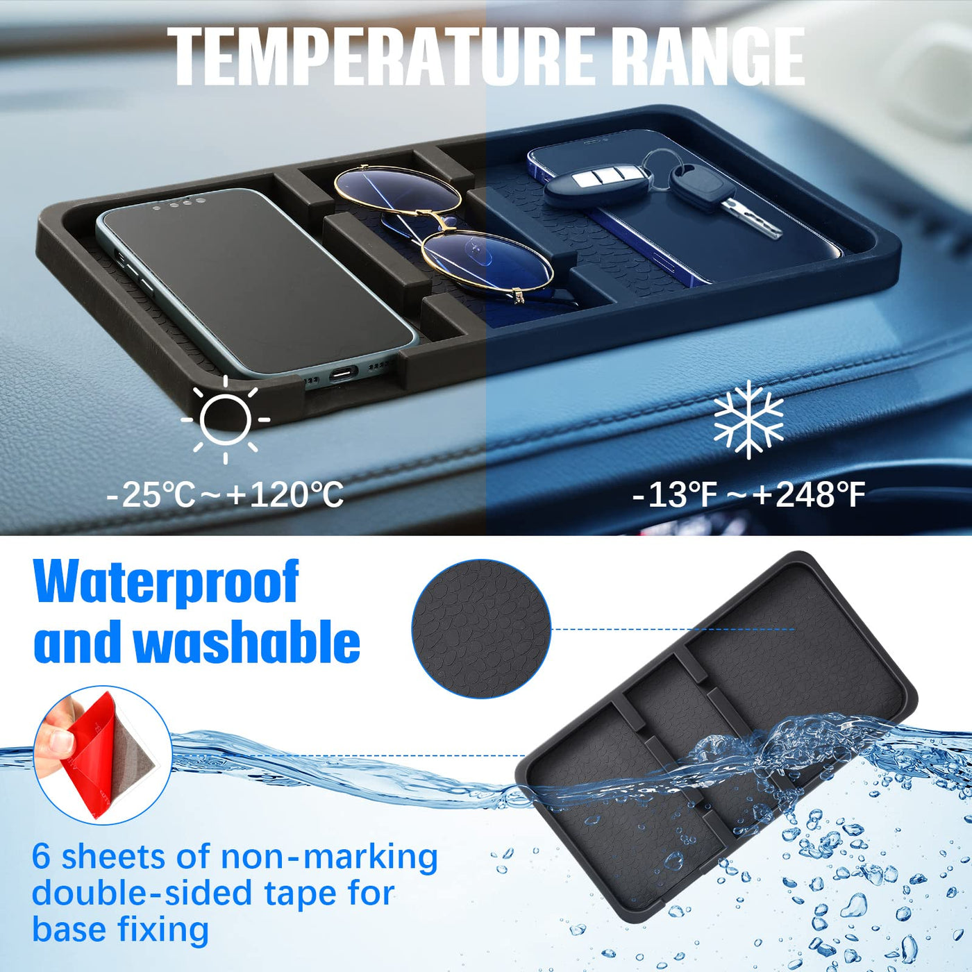 Q: What materials are used in the Extra Large Dashboard Mat?A: The Extra Large Dashboard Mat is made from PVC soft silicone rubber, providing a durable and anti-skid surface that keeps your items secure.