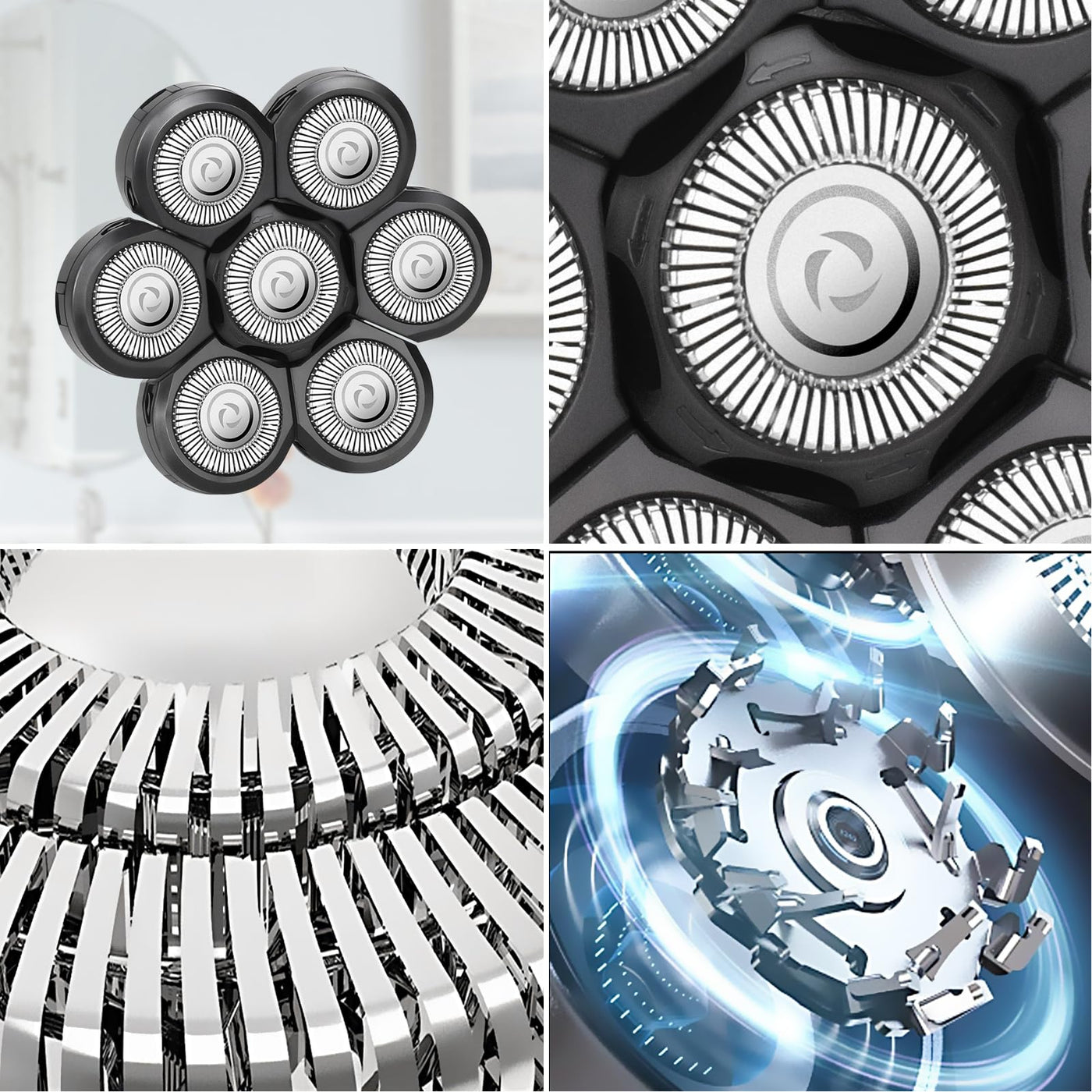 2Pc 7D Men'S Electric Shaver Replacement Heads, Razor Head Shavers For Bald And Face, Shaving Beard Cutter For Men With Brush Ac
