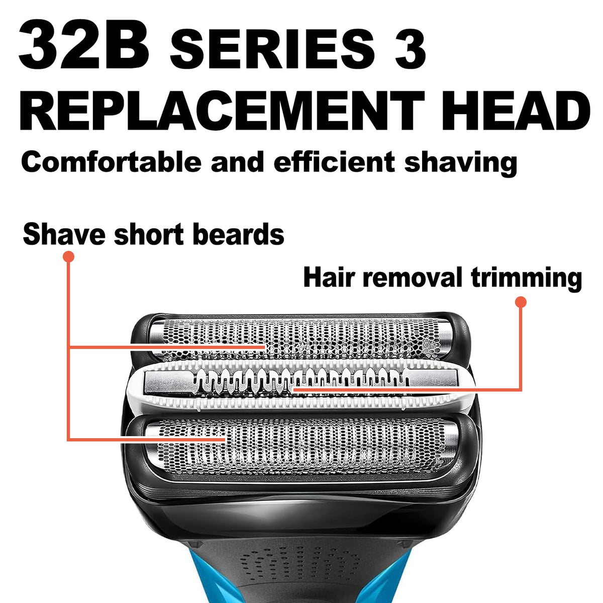 32B 2Pcs, Series 3 32B Electric Shaver Replacement Head Compatible, 32B Replacement Electric Shaver Heads For Men Razor Shaving