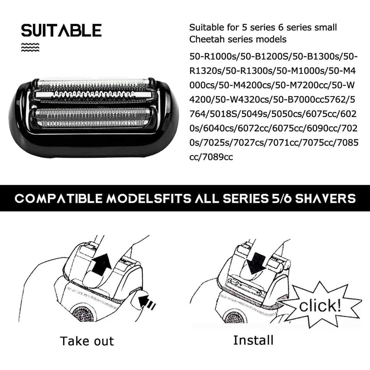 The 53B Replacement Blades Are Compatible With Braun Series 5 And Series 6 Foil Shaver 5018S,5020S,5035S,5049S,5050Cs,6075Cc,6020S,6040Cs,6072Cc,6075Cc,6090Cc And So On.Follows The Contours Of Your Face Allowing You To Effectively And Comfortably Trim And Shave All Areas Of Your Face.