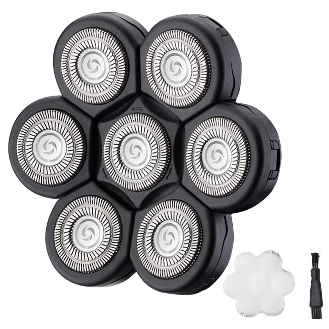 7 Blades Head Men'S Electric Shaver Replacement Heads Floating Washable Shaver Replacement Blades For Bald Men (Black)