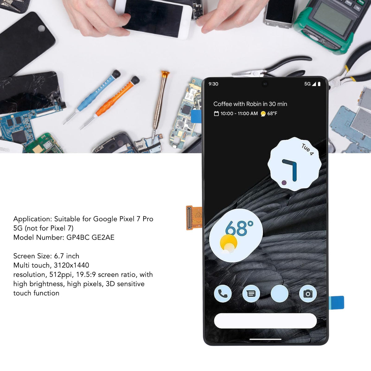Amoled Screen Replacement For Google Pixel 7 Pro Gp4Bc Ge2Ae, 6.7In Touch Screen Digitizer Assembly With Tool, 3120X1440 Resolut
