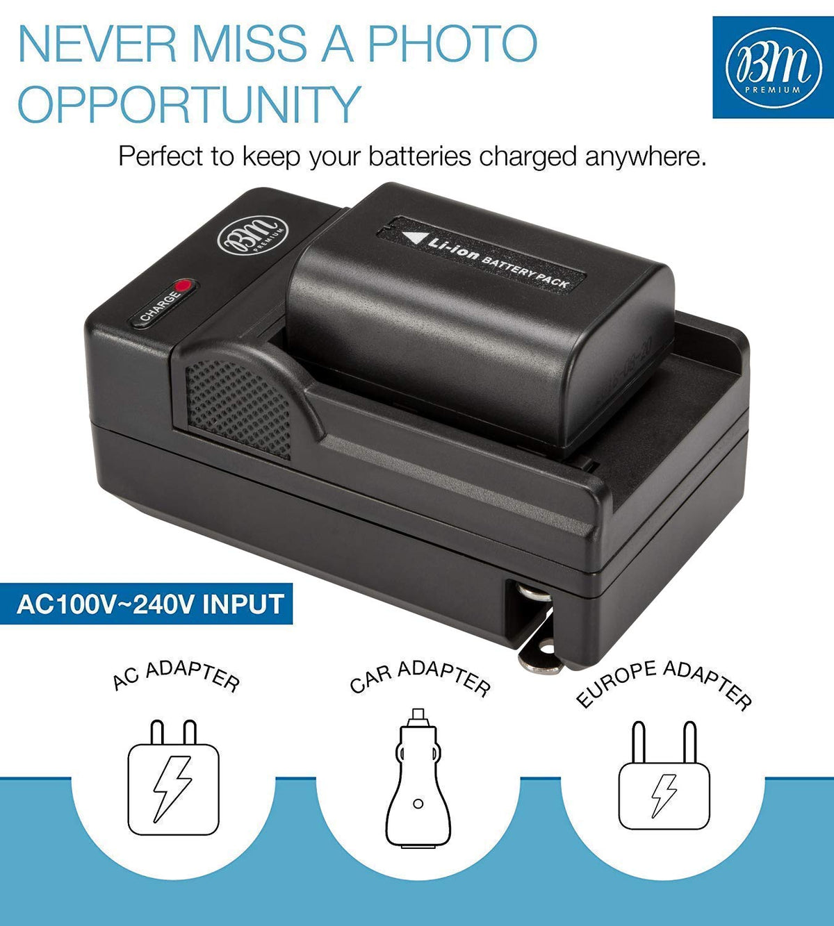 Bm Premium Pack Of 2 Np Fv50 Batteries And Battery Charger For Sony Fdr Ax53, Hdr Cx675/B, Hdr Cx455/B, Hdr Cx330, Hdr Cx380, Hd