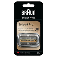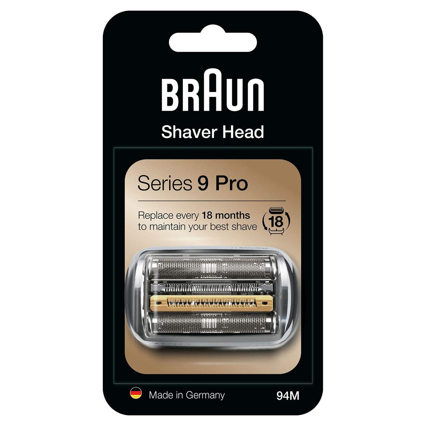 Braun Shaver Head Replacement Part 94M Silver, Compatible With Series 9 Pro And Series 9 Electric Razors For Men