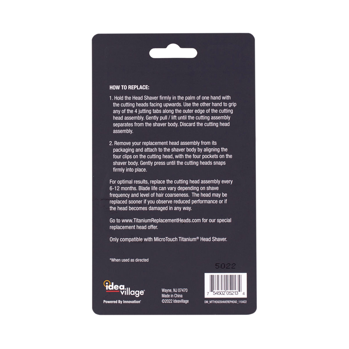 Q: What is included in the MicroTouch Titanium Head Shaver replacement head purchase?A: The purchase includes only the replacement head for the MicroTouch Titanium Head Shaver. The actual shaver device is not included.
