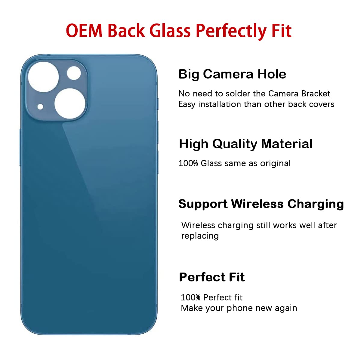 Product Features: 1Brand New And 100% Perfectly Fit 2 Come With A Full Set Of Professional Glass Remove Toolkit 3This Back Glass Replacement Will Repair Your Cracked, Damaged, Scratched Phone Warm Tips: 112 Months Warranty Is Provided Please Feel Free To Contact Us If You Are Not 100% Satisfied With It 2Installation Manual Is Included However They Are Many Installation Viedo Online You Can Choose Instruction&Nbsp You Want 3Please Power Off Your Phone Before Replacement Package Includes: Oem Back Glass Replacement Compatible With Iphone 13 Full Set Reparing Toolkit A1 Reparing Toolkit: 1Metal Flat End Knifea1 2Metal Esd Tweezersa1 3Opening Pry Carda1 4Triangle Picka2 5Cleaning Wipea1 6Detailed Installation Manuala1 7Clean Brusha1 8Rubber Banda3