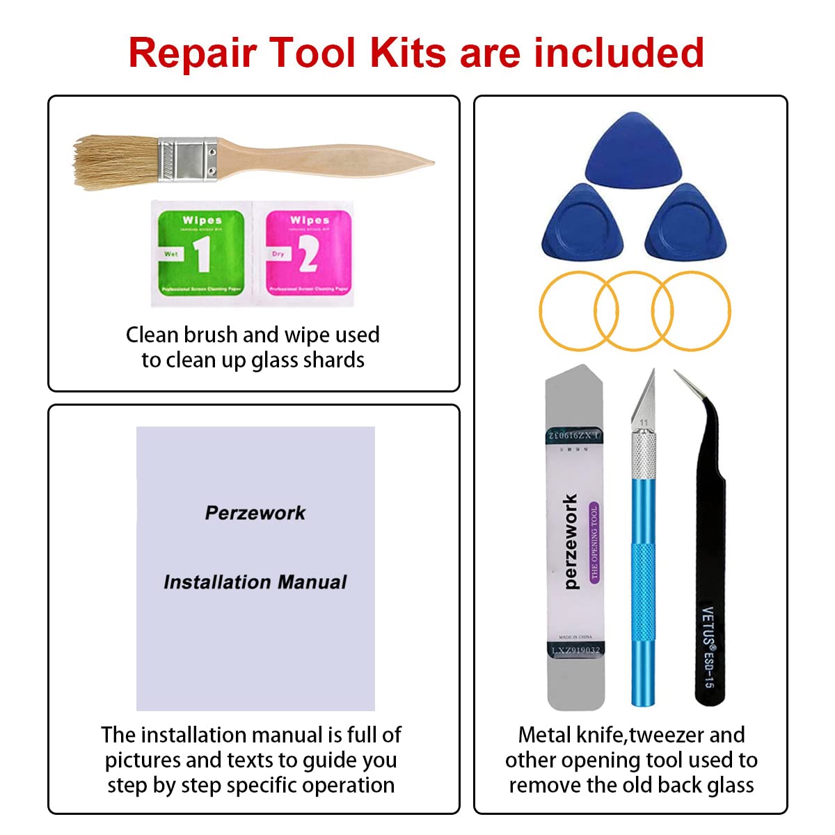 Q: Does the replacement glass come with a warranty?A: Yes, the Perzework back glass replacement includes a one-year warranty, ensuring quality and customer satisfaction for your purchase.
