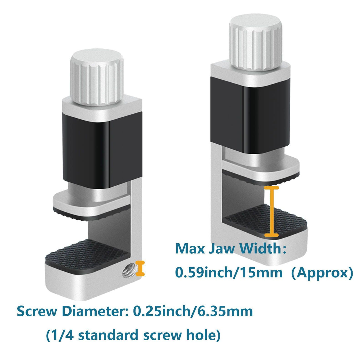 Q: Are there any special features that enhance the usability of these clamps?A: Yes, the clamps feature two expansion holes, one on the right side and one on the back, accommodating standard screw sizes. This allows for the attachment of mobile phone stabilizers or tripods, making them versatile for various DIY tasks.