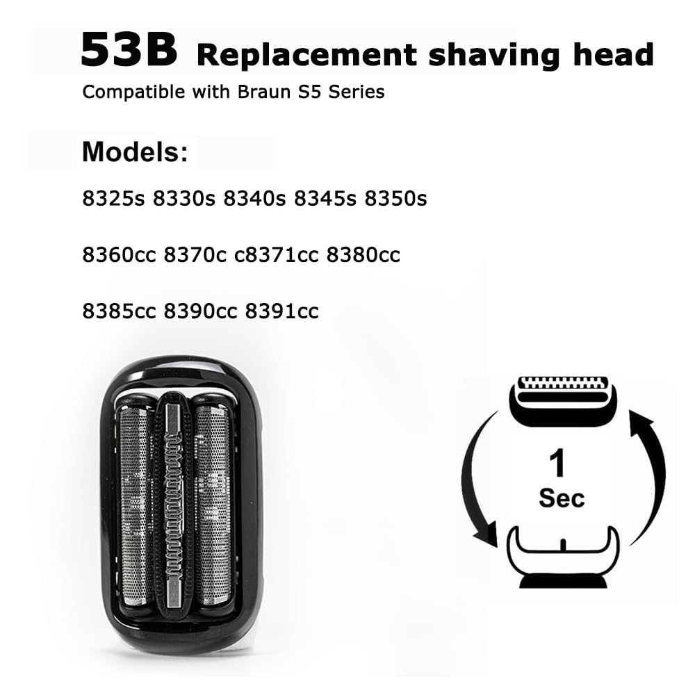 The 53B Replacement Blades Are Compatible With Braun Series 5 And Series 6 Foil Shaver 5018S,5020S,5035S,5049S,5050Cs,6075Cc,6020S,6040Cs,6072Cc,6075Cc,6090Cc And So On.Follows The Contours Of Your Face Allowing You To Effectively And Comfortably Trim And Shave All Areas Of Your Face.