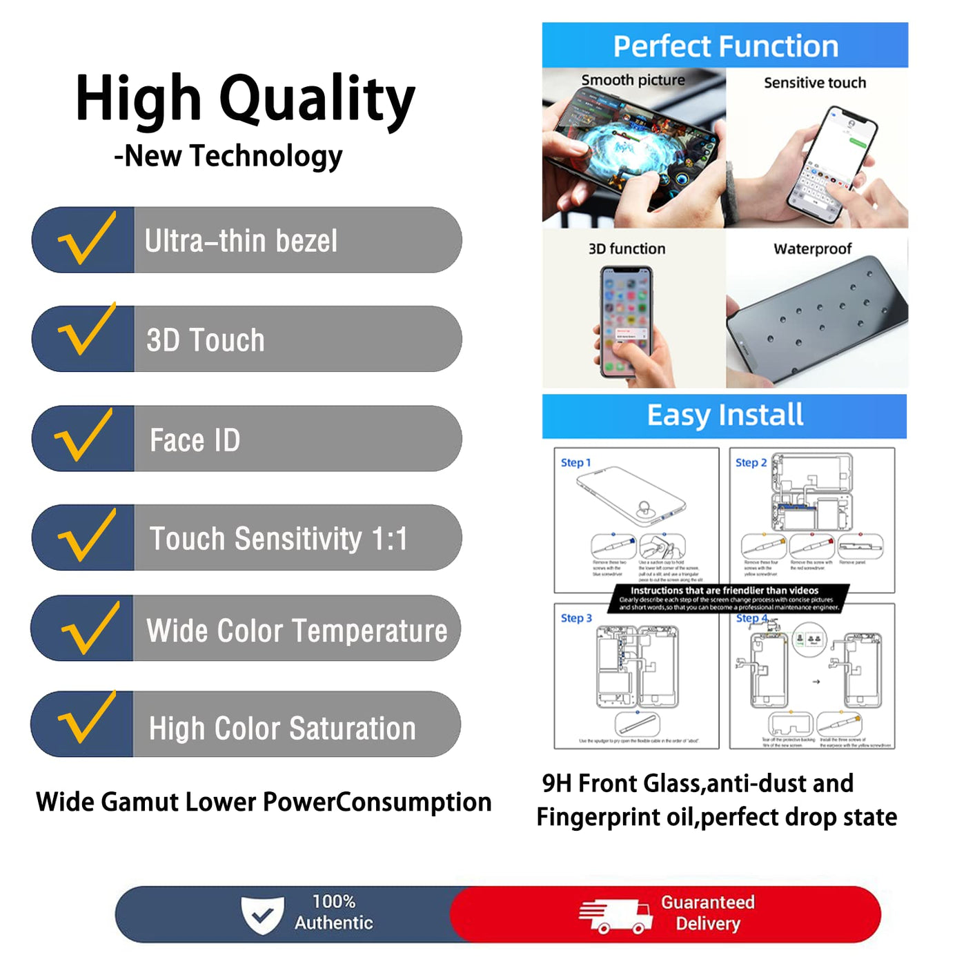 Q: Is it difficult to install the replacement screen for the iPhone XR?A: Installing the iPhone XR replacement screen is straightforward with the provided step-by-step video tutorial and manual. We highly recommend watching the tutorial beforehand to ensure a smooth installation and to avoid any potential damage.