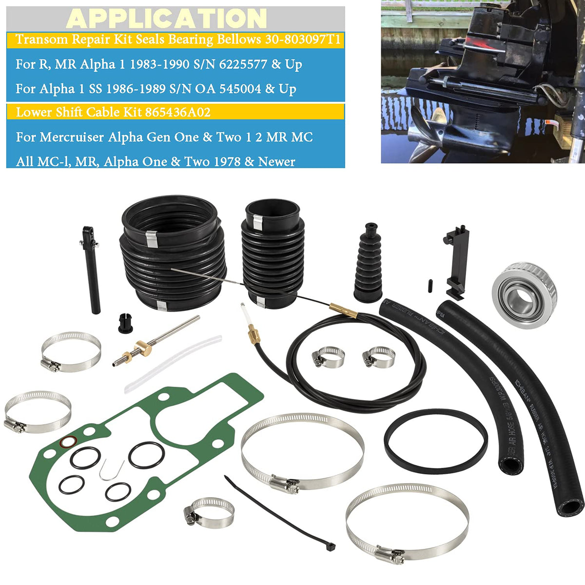 ?Transom Seal Repair Kit?For Mercruiser R, Mr Alpha 1,Gen 1 1983-1990 S/N 6225577 & Up , Alpha 1 Ss 1986-1989 S/N Oa 545004 & Up | ? Lower Shift Cable Kit ?Fits For Mercruiser Mc-I, R, Mr, Alpha One & Gen Ii (1978 And Newer) | ?Function?To Rebuild Your Stern Drive, To Replace Water Hoses, Seals, Gaskets, Bellows , Lower Shift Cable, And Hose Clamps To Seal Opening In The Transom For Stern Drives | ?Replacement? Replaces For Mercruiser / Quicksilver 865436A02, 19543A10, 19543A8, Sierra 18-2603, 30-803097T1 | ?Satisfaction Guarantee? If You'Re Not 100% Satisfied With This Repair Kit, Simply Return It For A Full Refund In 30 Days, Guarantee With 12 Months