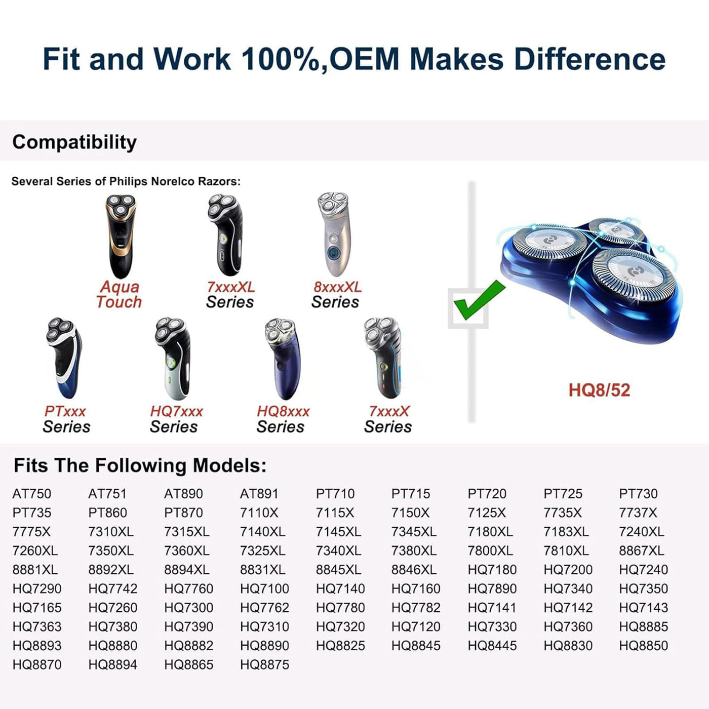 Tuokiy Replacement Heads Compatible With Phlips Norelco Hq8 Shaver, Hq8 Blades, Compatible With Philips Norelco Aquatec Shavers