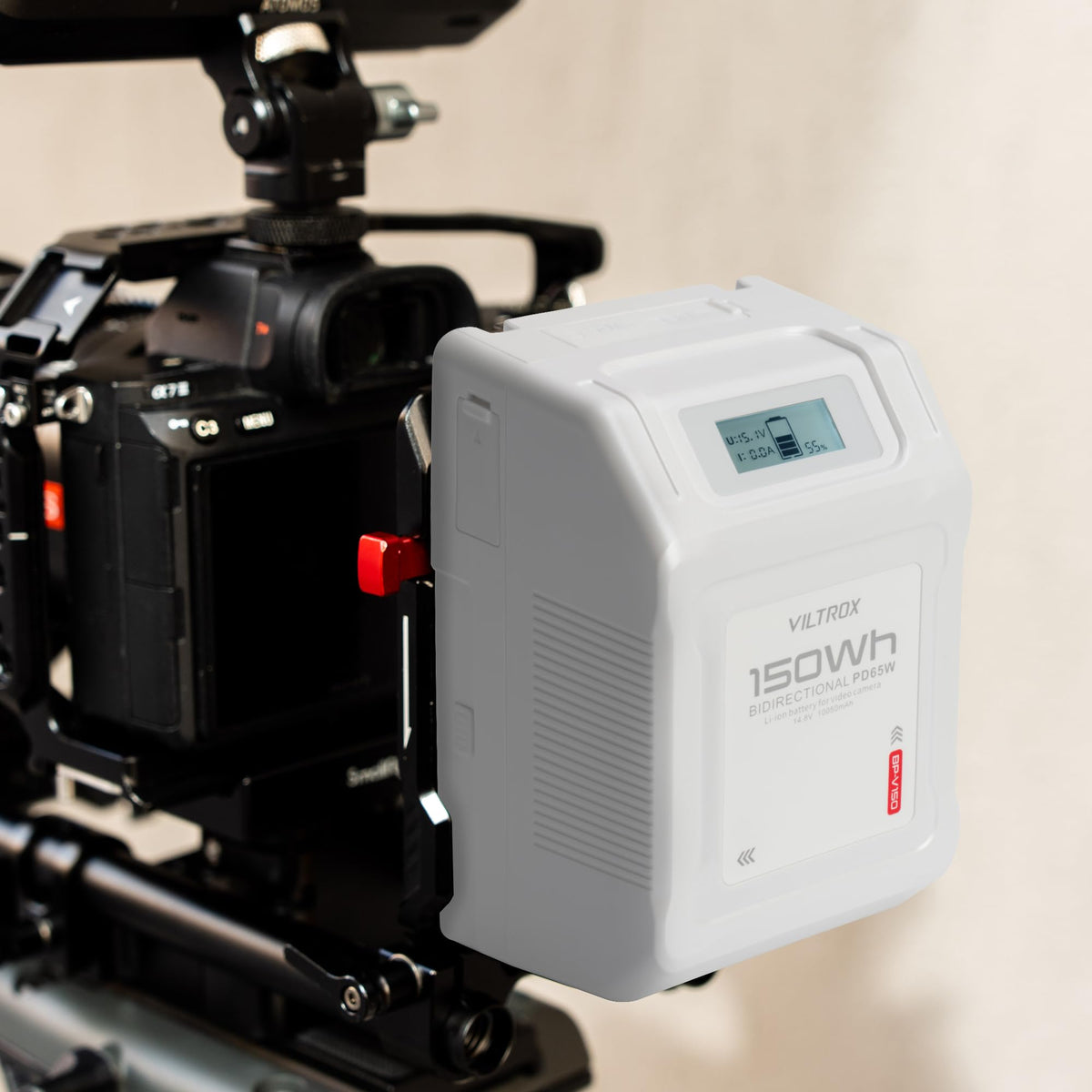 Q: What safety features does the VILTROX 150W V Mount Battery have?A: This battery includes a practical OLED display to keep track of its working status, along with built-in safety features to protect against overheating and ensure safe usage during extended filming sessions.