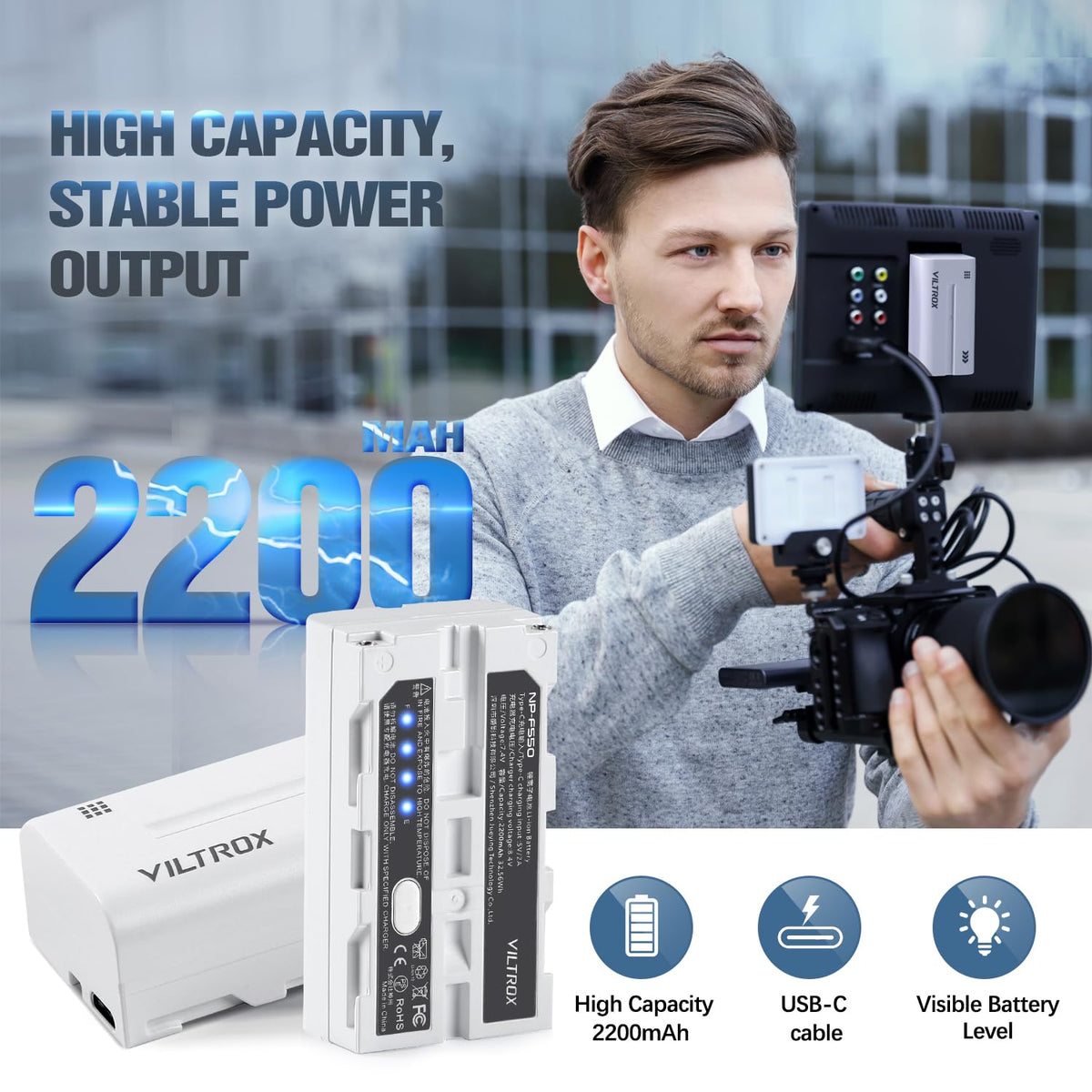 Viltrox Np F550 Battery 2 Packs, Replacement For Sony Np F550 F570 F750 F770 F950 F960 F970, Compatible With Led Light/Monitor/C