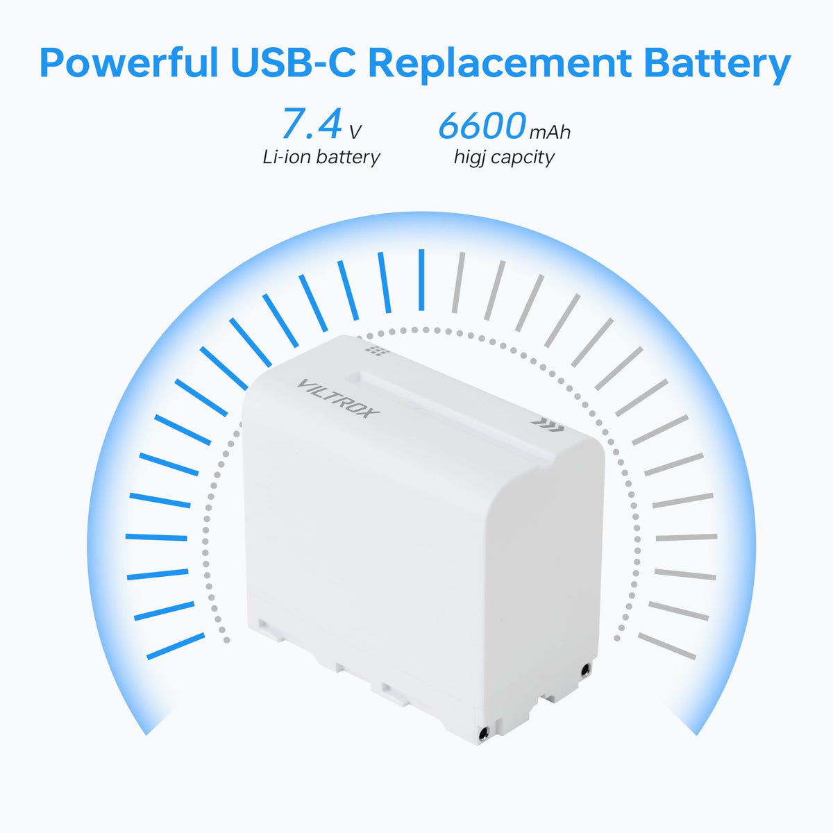 Viltrox Np-F970 Battery 2 Pack 6600Mah Replacement Battery For F970 F960 F950 F770 F750 F570 F550 F330, Rechargeable Battery Compatible With Godox Viltrox Neewer Led Video Light/Camera Monitor